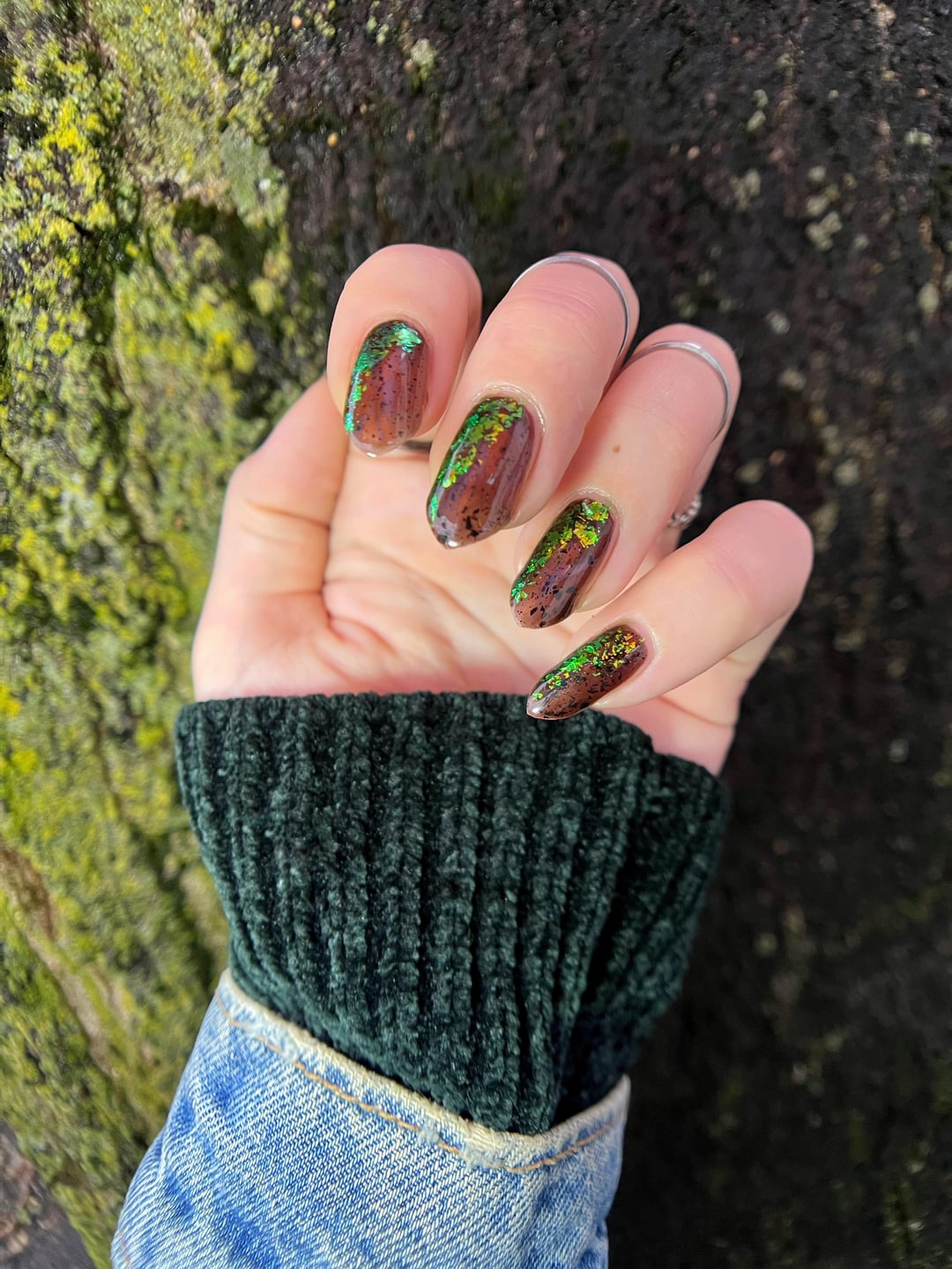 NGL, kinda wishing I owned My Cabbages so I could copy this magical look — not sure I’d execute it as well but it’d be fun to try lol. I just LOVEEE moss inspired nails. These are so well done and unique using EdM as a base (I’m still waiting on my preorder of this from Nov 25 🥲) – thanks for sharing these beauties with us!!