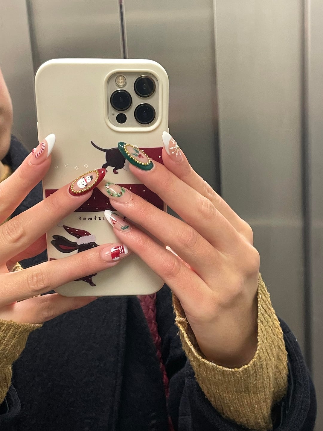 I was too stressed to post my Christmas nails but here I am now. I have never spent this much time on a set, but I think it was worth it. Kind of sad that I’m gonna take them off soon. by Colorworld1