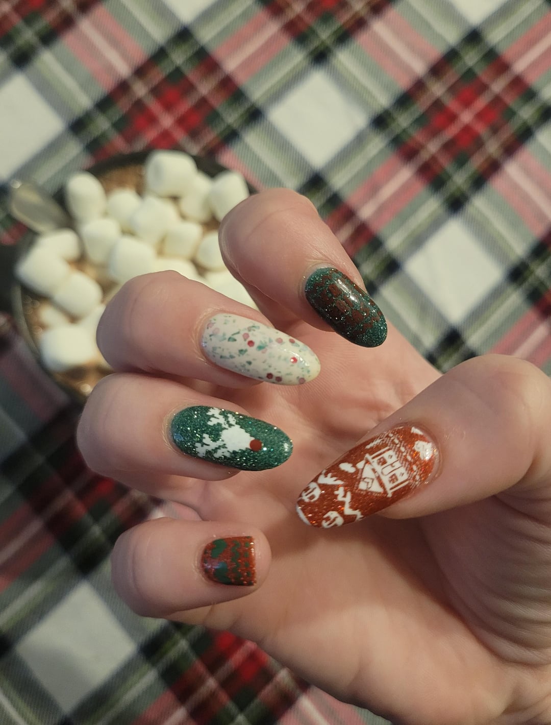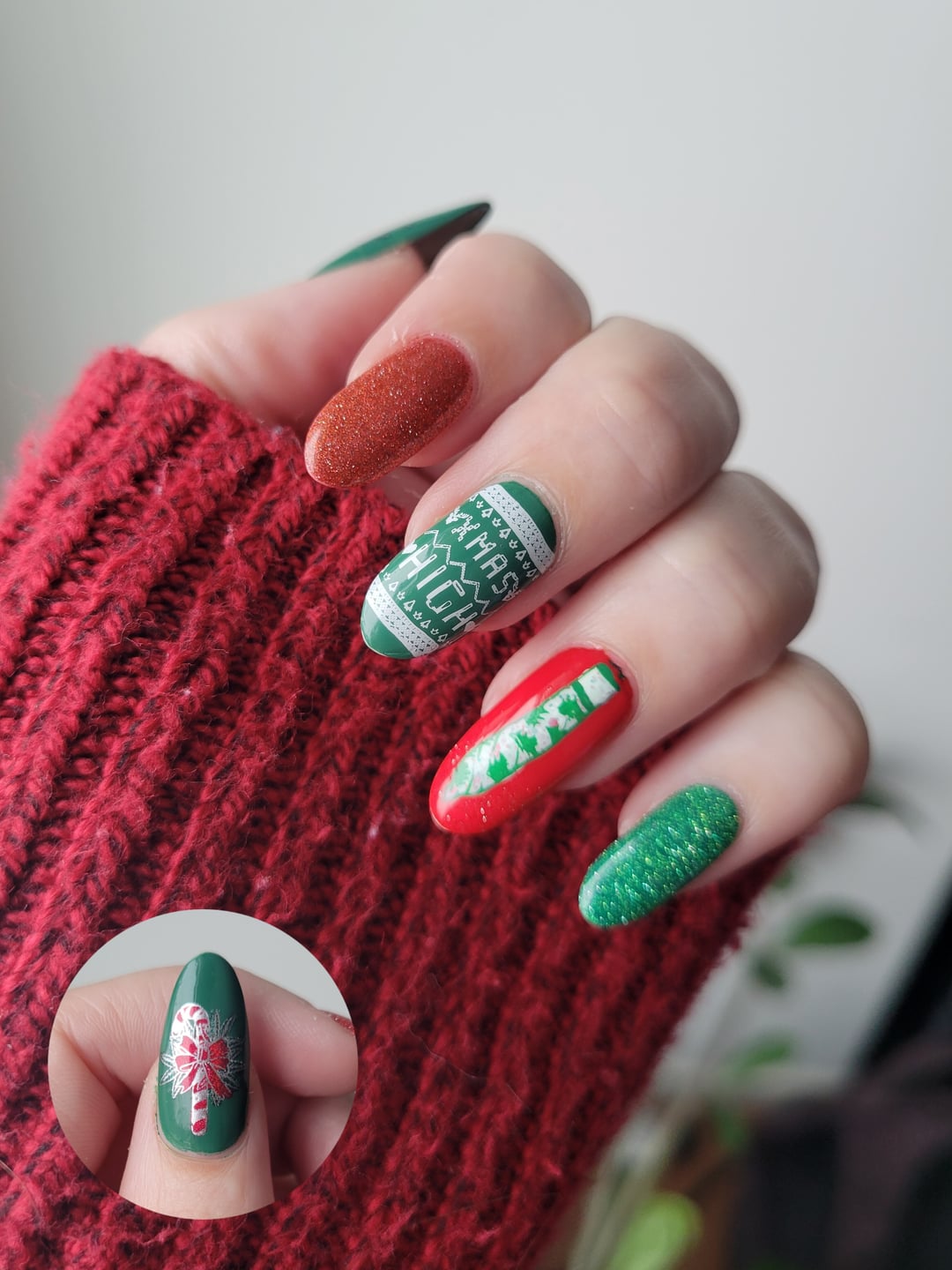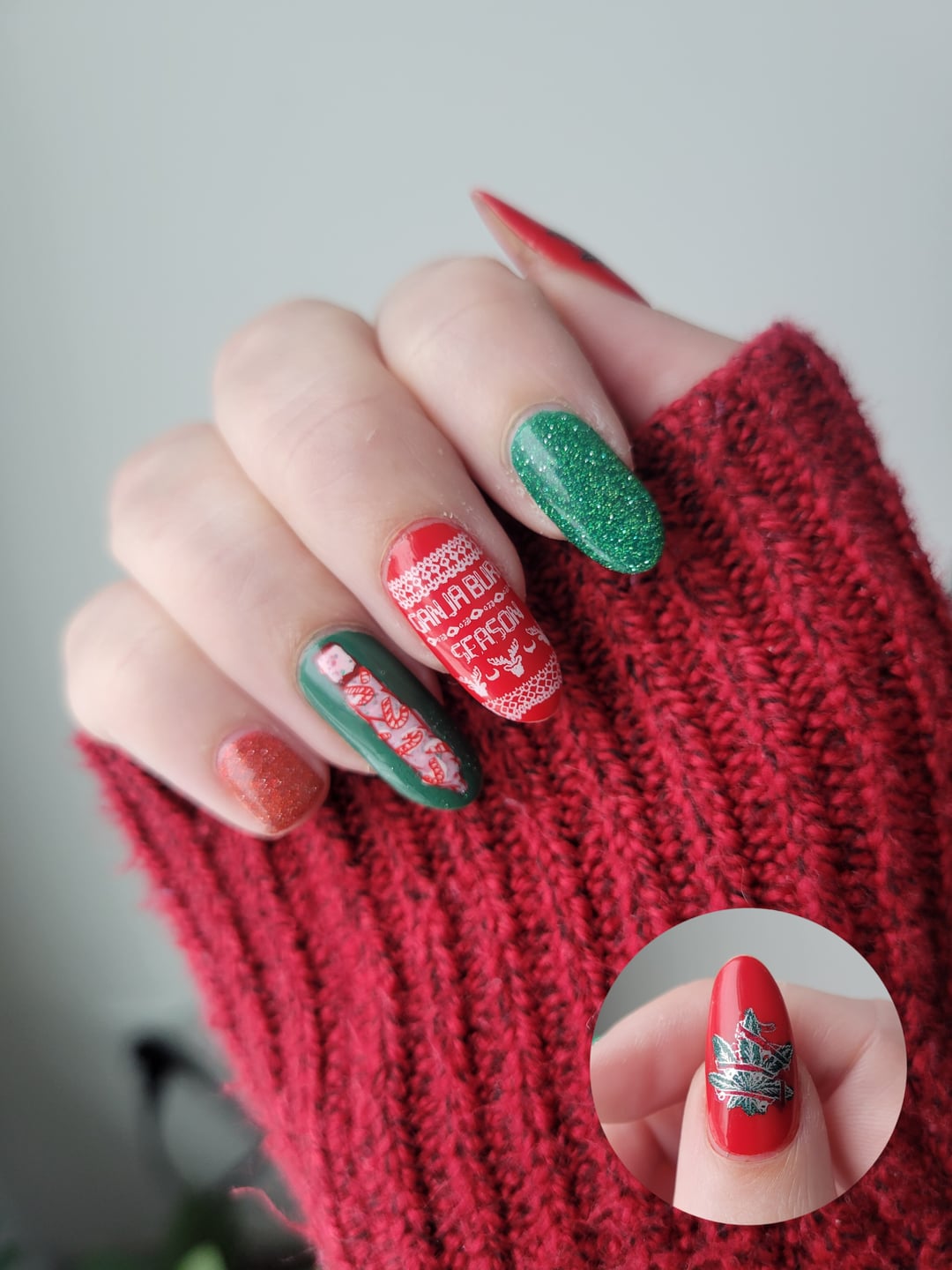 * holiday hygge [MXM115], bam! white, cherry bomb, spearmint, sticky base coat, smudge free top coat – maniology