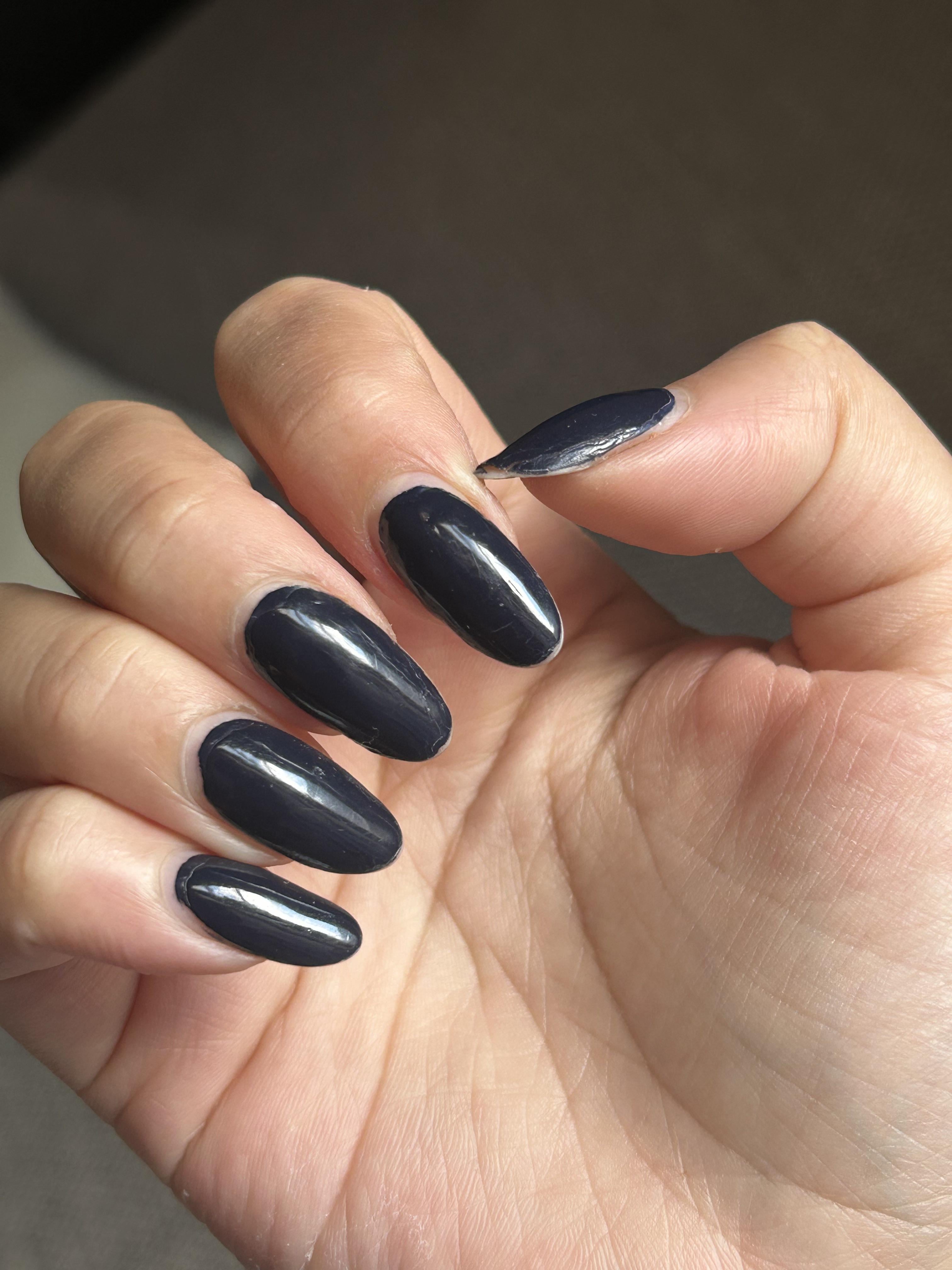 I should mention that I'm a bit of a germaphobe and wash my hands a lot(you can see them cracking from how dry they are). I applied two coats of polish, no base coat, and one coat of the Essie Gel Couture top coat. I've never had a polish last this long; my nails look so beat up, but I want to see how long I can push it.
