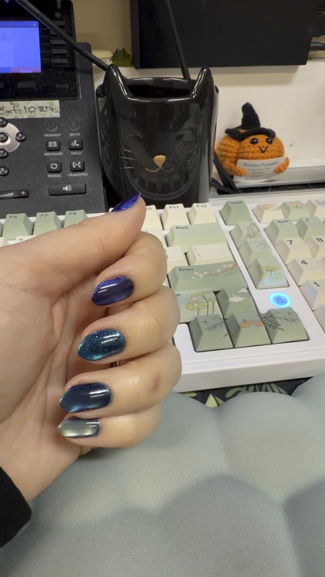 For my birthday mani I thought I’d try doing a magnetic blue skittle since my sister got me Bloodbender for my Christmas/birthday gift and I finally got ahold of Blade of Frontiers from the BKL BF sale. I also wanted to compare BKL’s Bad Vibes Only to Bloodbender but they’re not really the same at all and I hate how much I love Bloodbender. 😭
