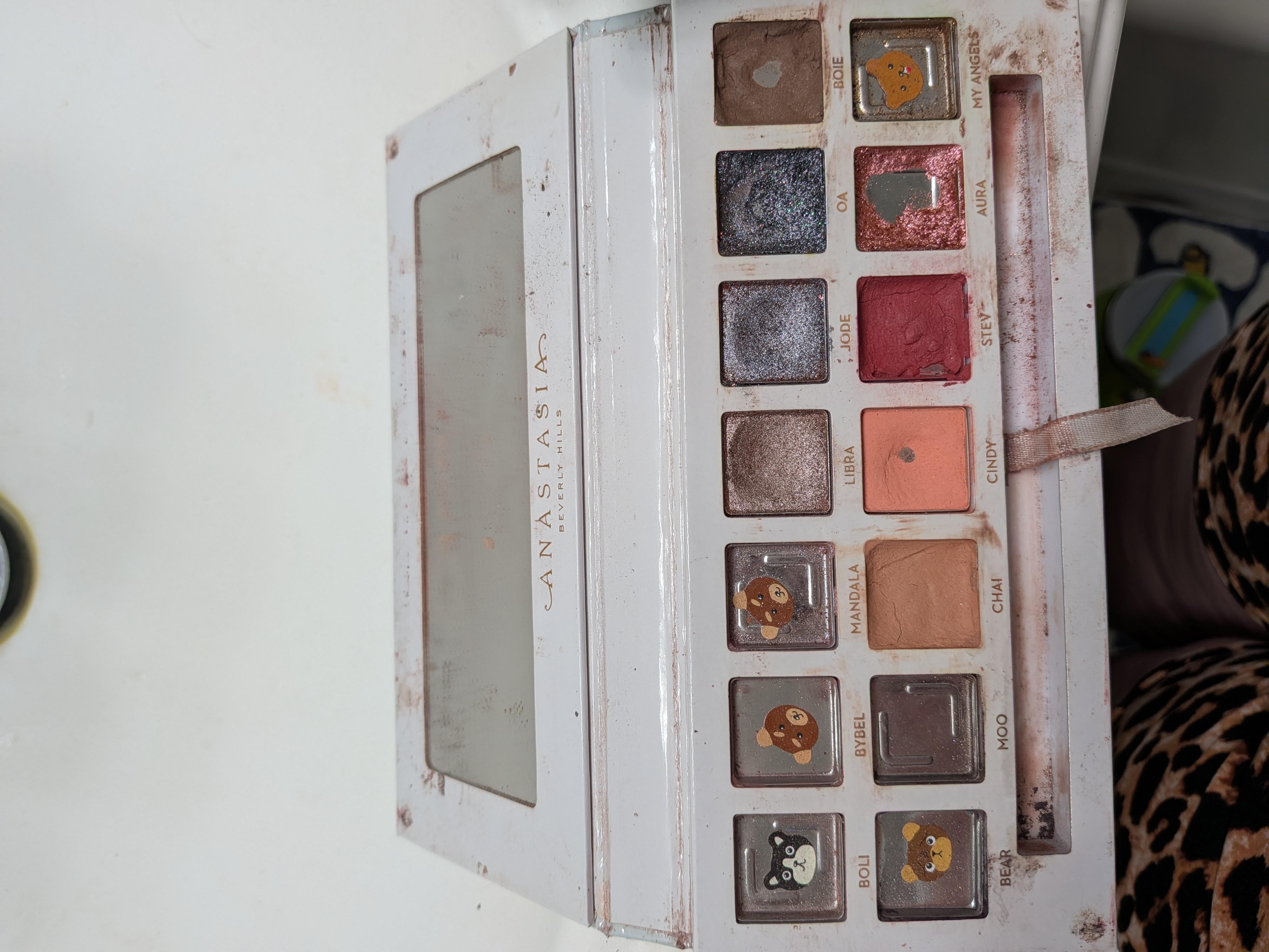 Using aura as a glitter blush, nail polish, and eye shadow. Have never gone through an eyeshadow this quickly. Abh cardi bybel palette