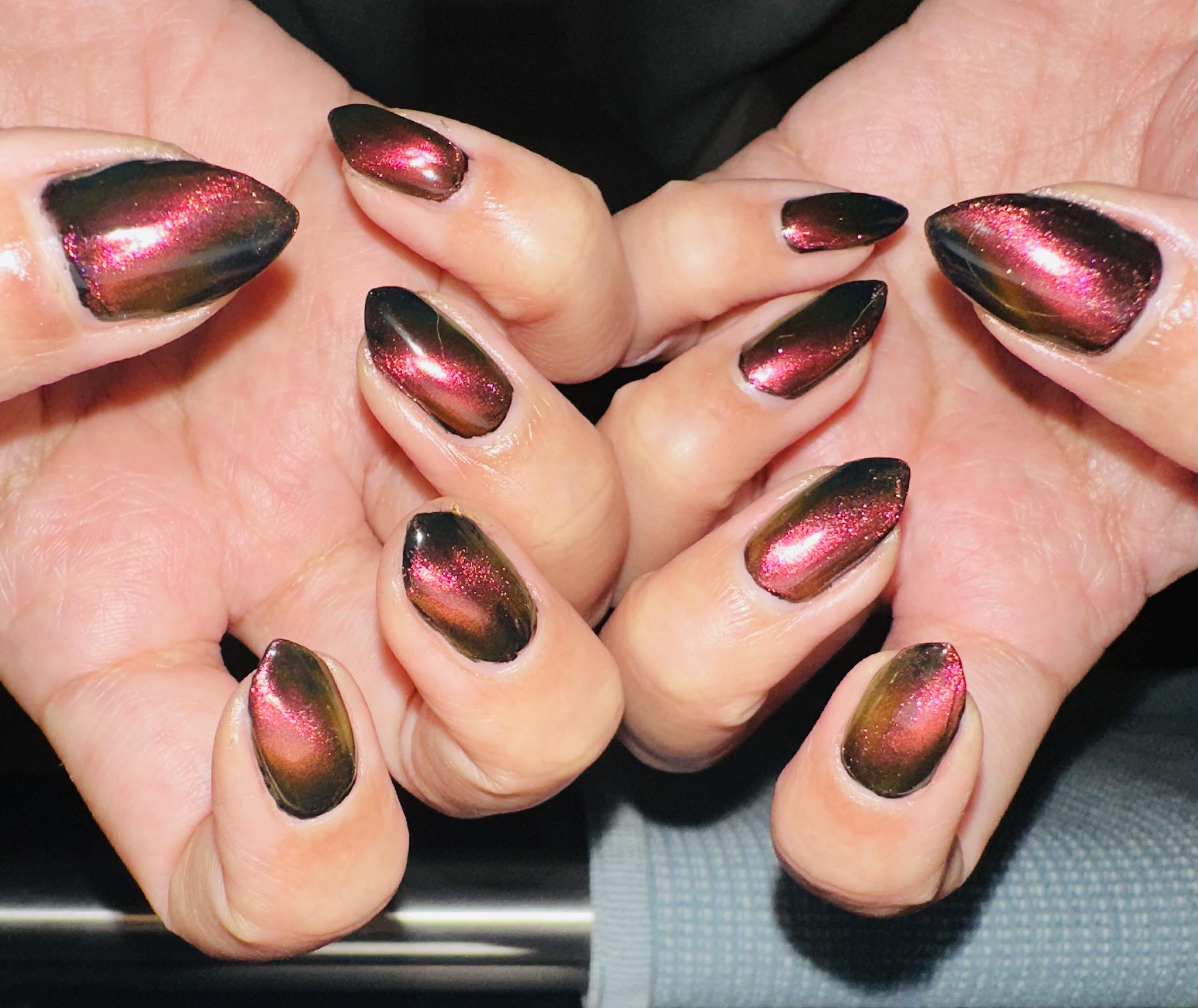 Edit: beautiful nails by the way! You did great with magnet work! Your nail shape is amazing!