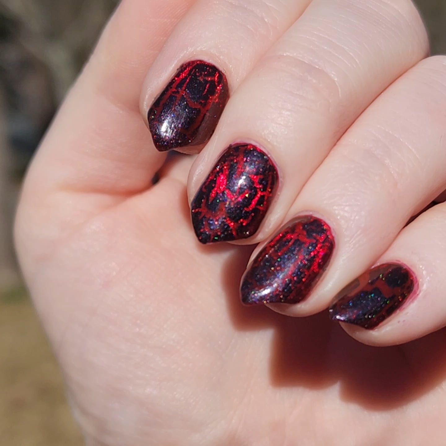 I received a lot of support and lots of comments calling it "dragon egg nails". Also received the brilliant suggestion to do a red magnetic with black crackle to really sale the dragon egg esthetic.