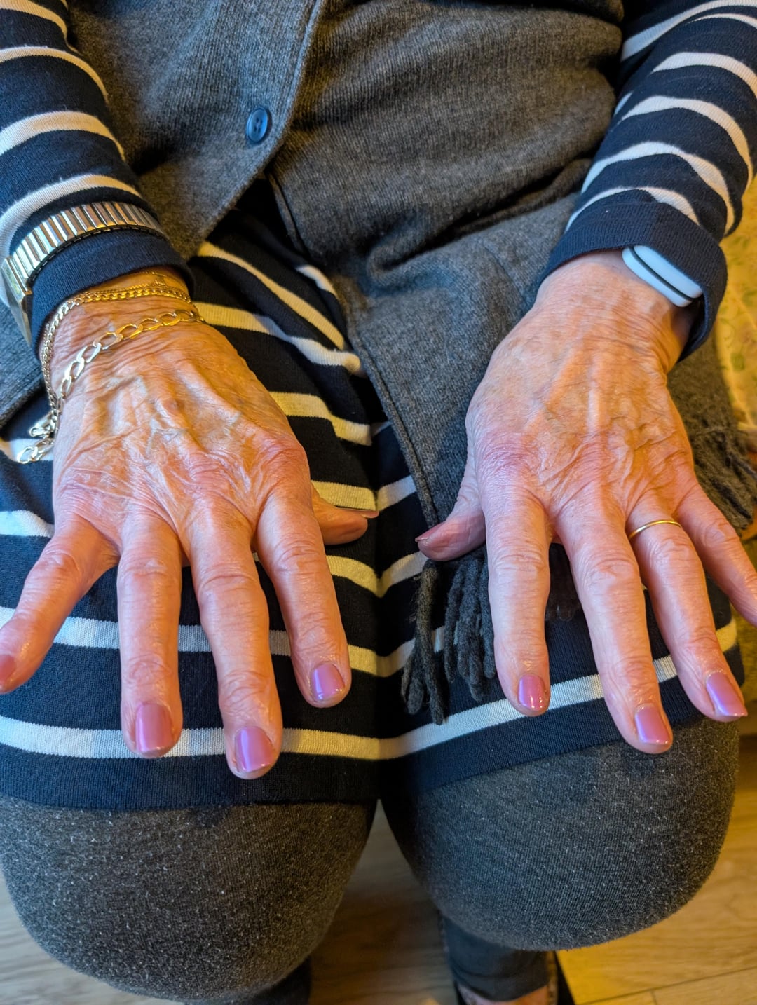 I noticed my Grandma had her nails painted at Christmas last week, other than that I don't think she does it often. I went to visit her today and asked if I could paint her nails. She chose Lurid – a rose amoungst the weeds, from a selection of 4 I took for her to choose from. Pinks are her favourite! She's doesn't show much emotion in general but I think she liked it.