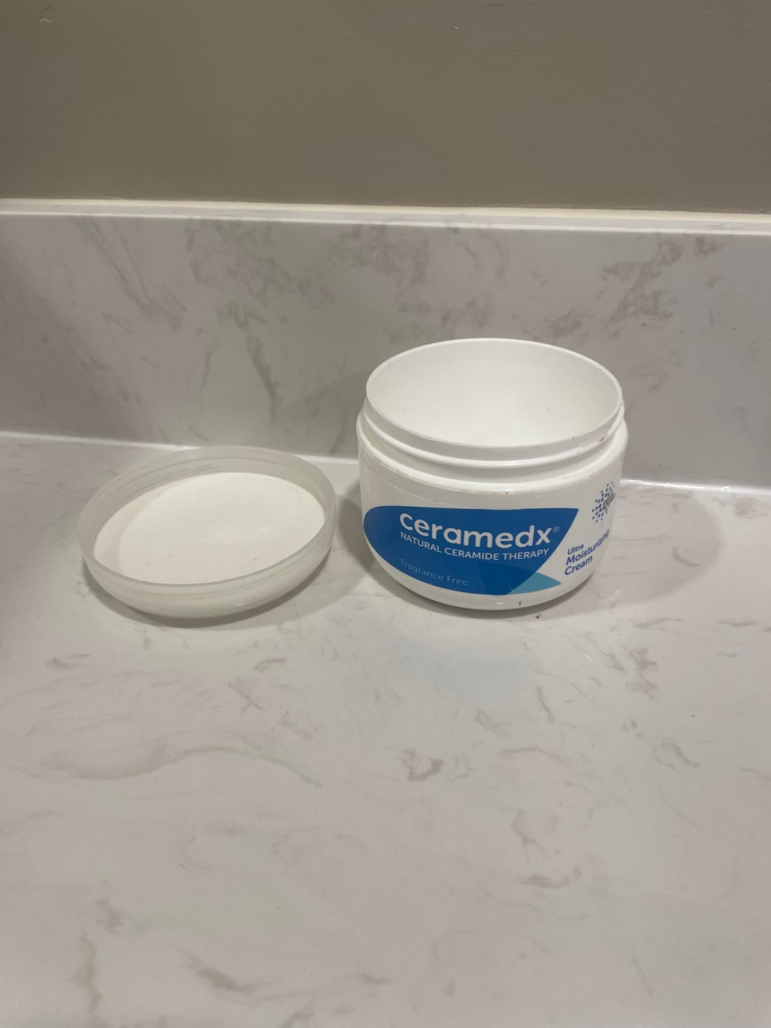 For those who listen to descriptions, the bottle is a short panned plastic jar with a twist top. The bottle is from the brand ceramedx.