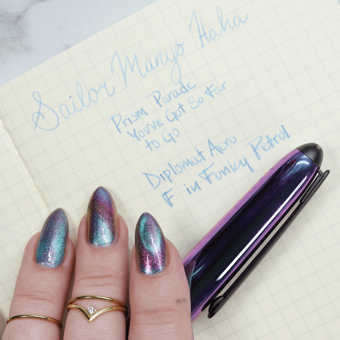 I just got this Diplomat Aero for a steal at my local stationary mecca (shoutout to Atlas Stationers and their sweet, sweet end-of-year sales π), and it rather serendipitously matched my current manicure. Really, I had no choice but to continue with the matching theme.