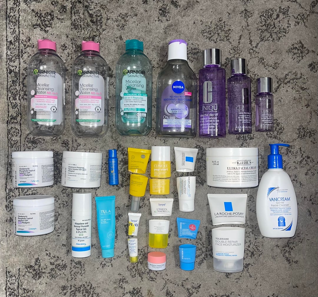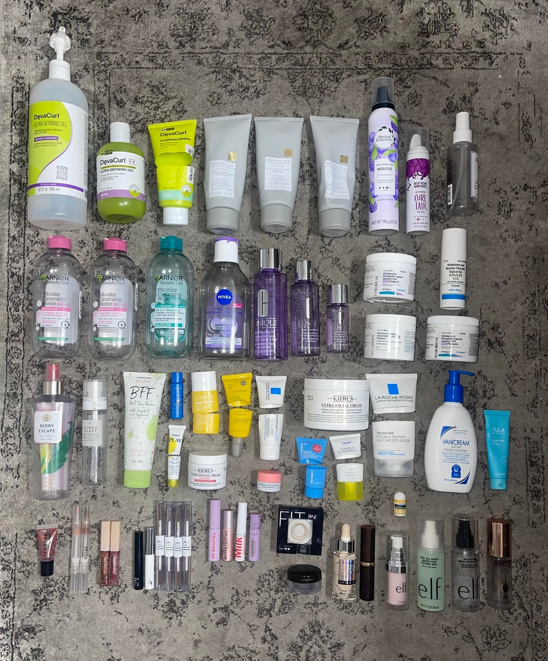 these are all of my 2025 empties!! anything with a star is one of my favorite products. i used $1,078 worth of product this year. i didn’t purchase everything at full price, and some things were just given to me but i didn’t take that into account when calculating. feel free to ask for any reviews from a girl with oily, sensitive, acne prone skin 🙂
