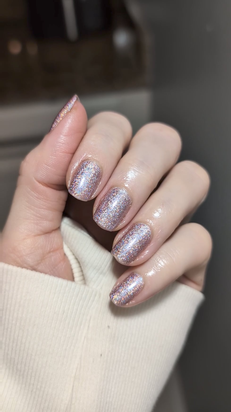 It's a cool toned holo pink, very smooth textured, applies beautifully. This is 2 coats and a topcoat.