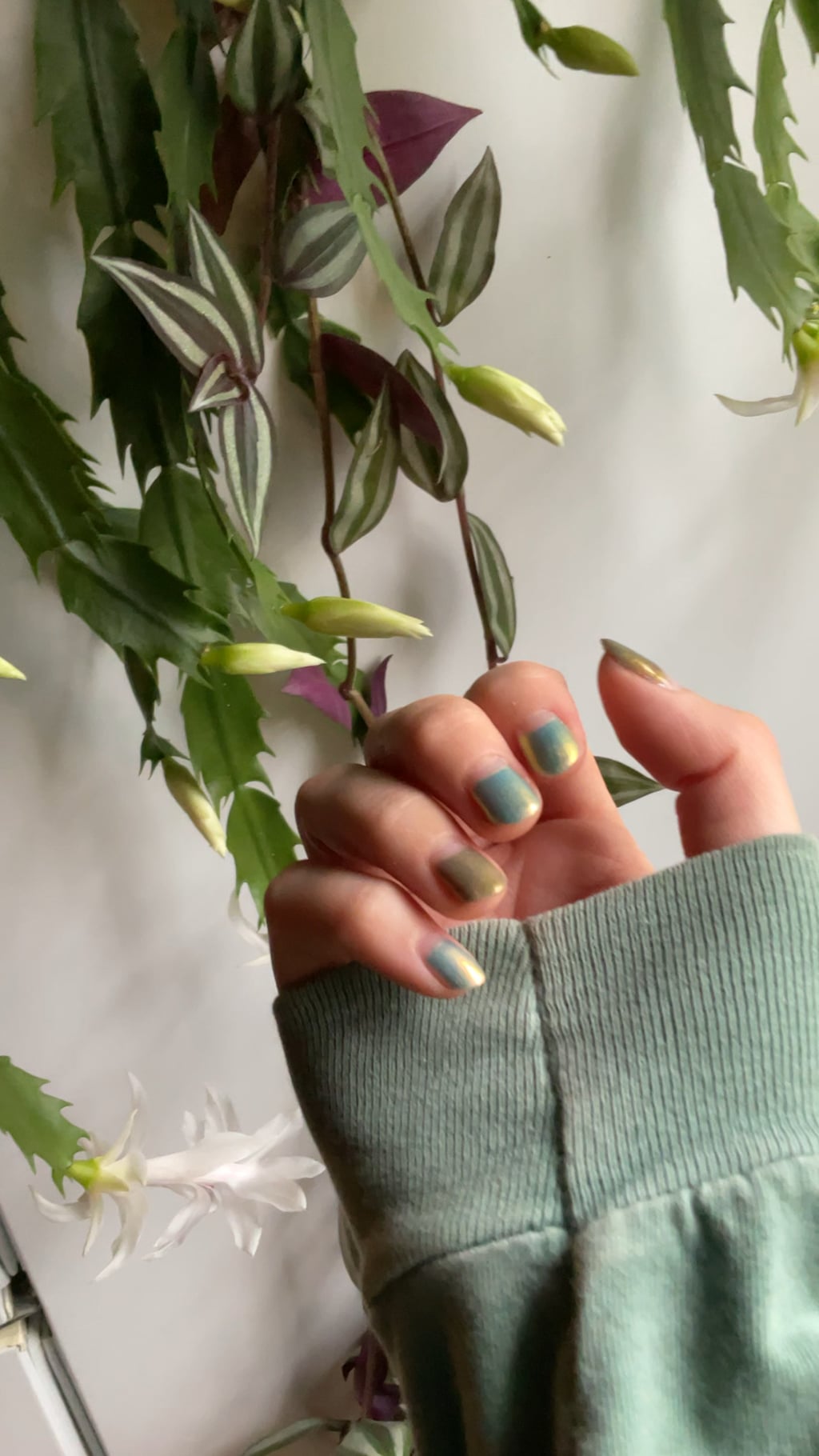 ft. my finally blooming christmas cactus. lynb – bsmooth base coat. bees knees lacquer – my little swan (thumb and ring). red eyed lacquer – my glowstick still doesn't glow (the rest). essie – gel setter by twinkletwill