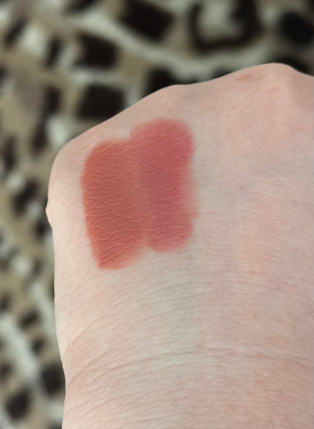 Hey guys, I have a mini Charlotte Tilbury "Pillow Talk Fair" lipstick, and I love it. Today I got a full-size of the same color and everything, BUT I compared the colors on my hand, and it look different. The mini one on the right has more pink color, and the new big one on the left is more peachy. Who knows why they have a different color?? I love the pink one more.