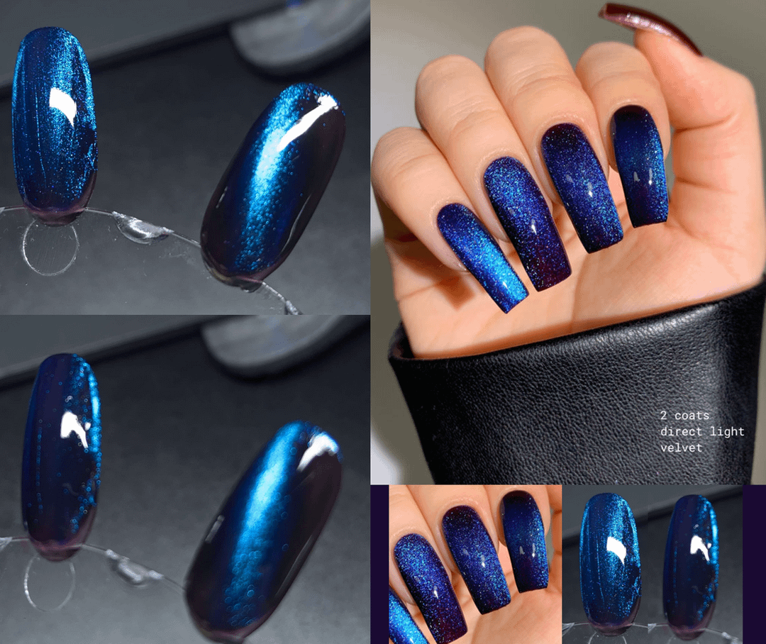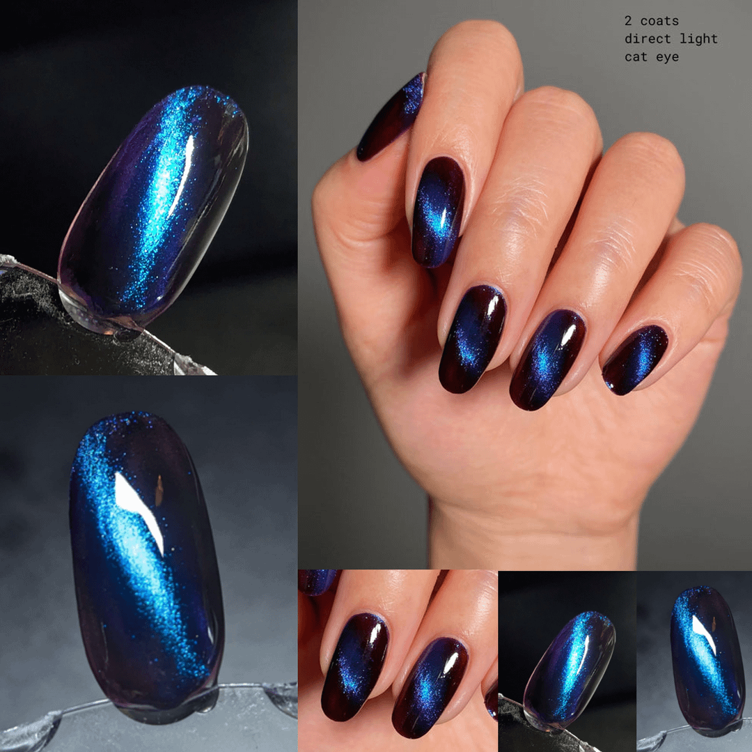 - KBShimmer Azure Wish (1 coat, magnetized in both cat eye and velvet effect)