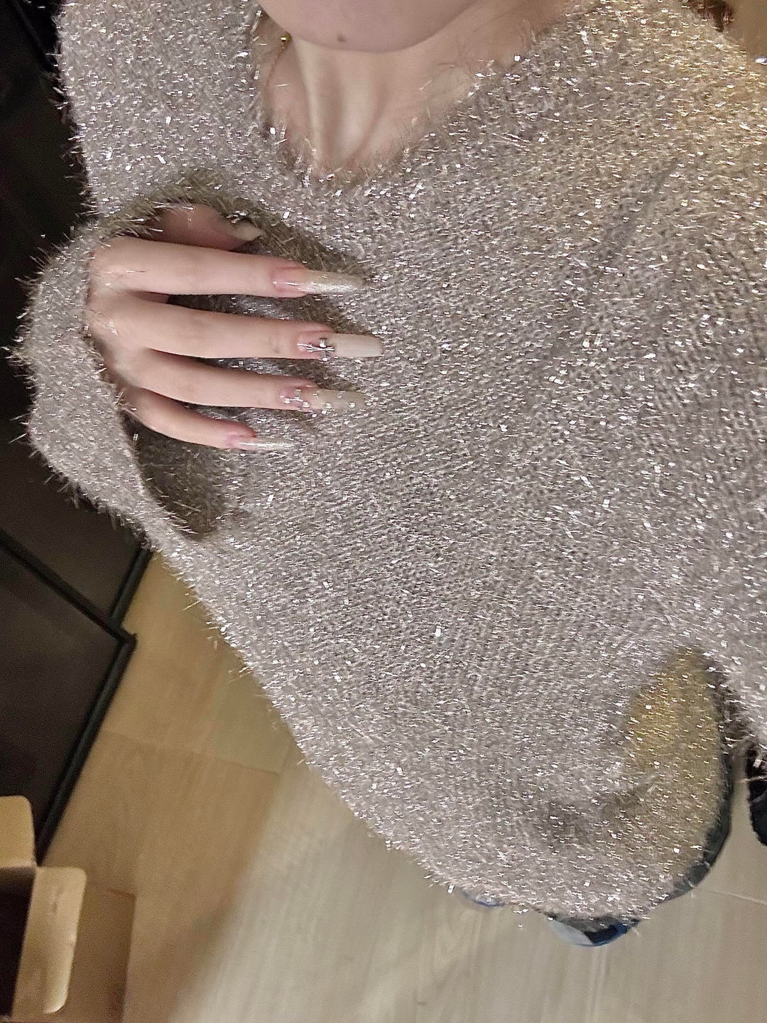 I went for a nude,champagne base with subtle glitter,rhinestones, and cross charms. The mix of matte and shimmer makes them look elegant but still extra. What do you think too much or just enough? by StockPen3258