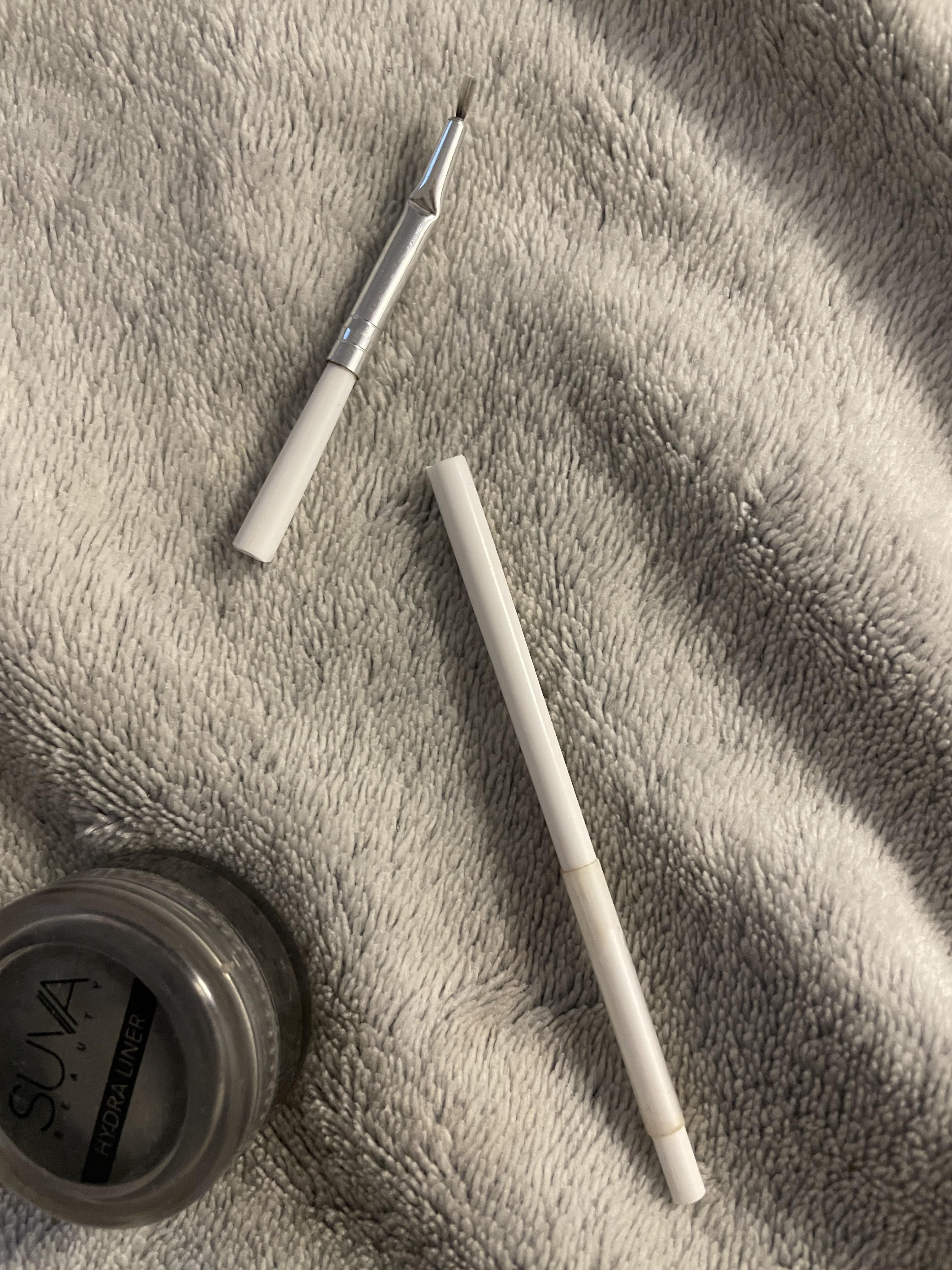 this is my eyeliner brush which i don't know the brand of – it is actually a nail art brush but it is so thin and perfect for eyeliner. it's like 7-8 years old back from my teenage phase of doing my gel nails at hone