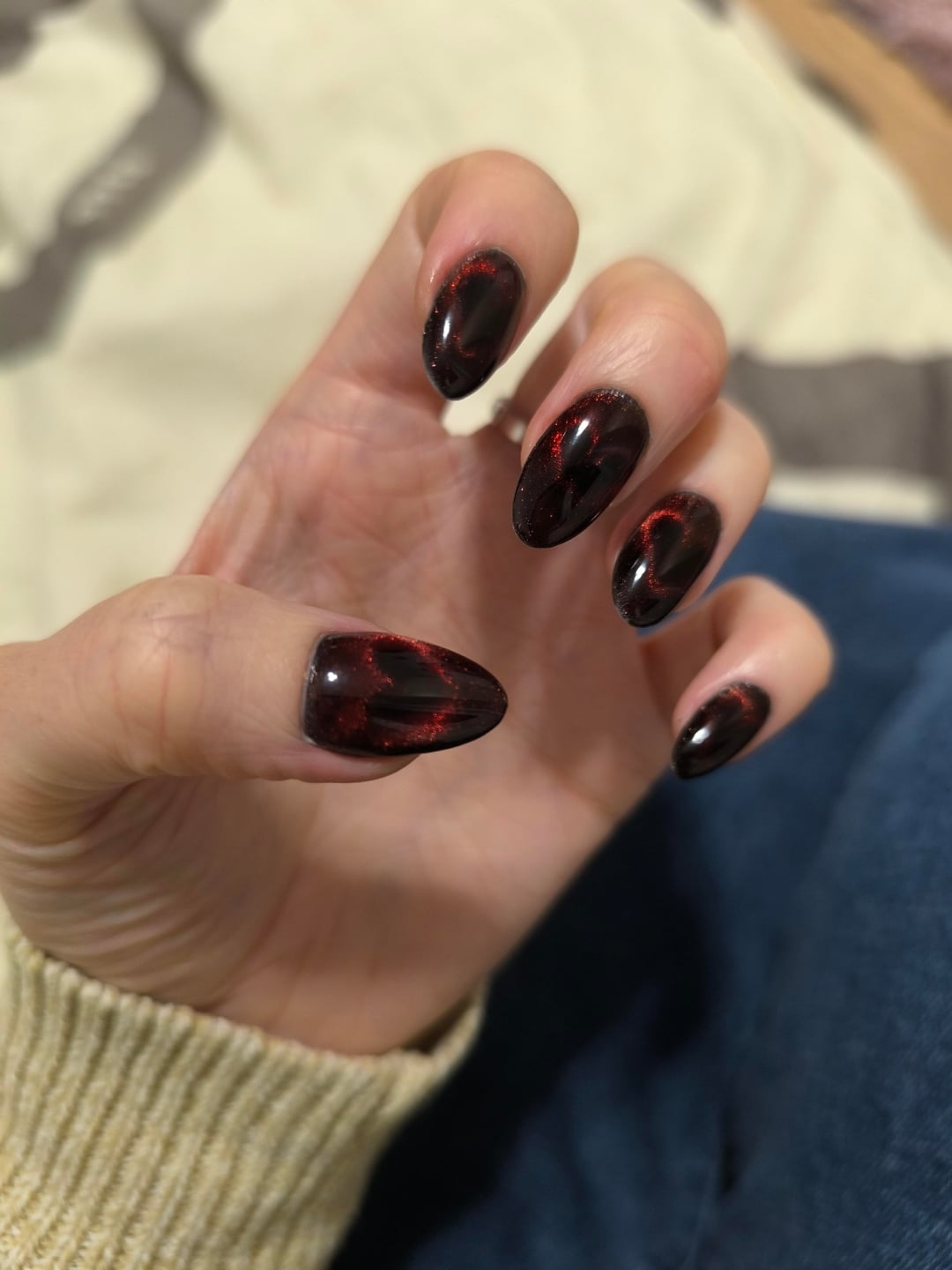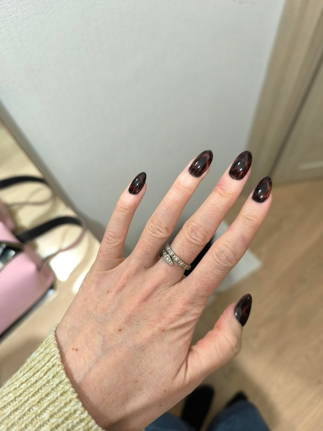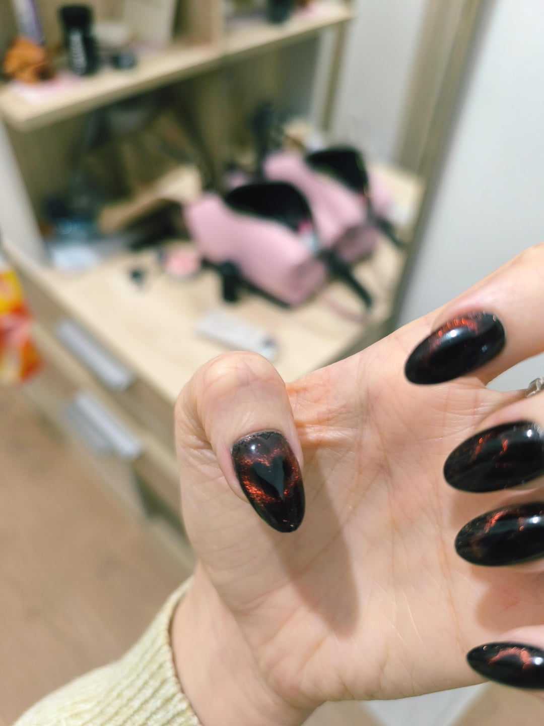 Obsessed with my Lobster! Two coats Haunted Polish Venom Rose unmagnetized. One coat DRK Magic effect magnetized for one minute with lobster. One coat DRK Seal Glaze unmagnetized. One coat LynB Designs Bquick magnetized for 1 minute with lobster. 🦞=lab stirrer