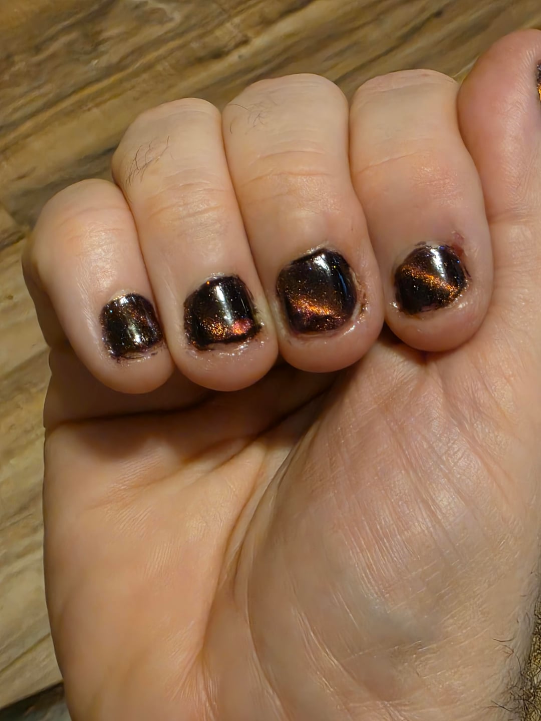 Been playing with different nail polishes for about the last six months now…and been a chronic nail biter for about as many years as I can remember being alive. I don't know if I'll be able to kick the habit – best I've been able to do so far is about a week – but I'm hoping if I post here every month or so, maybe that will be some extra motivation. Whatever tricks any of y'all recovered nail-biters might have to suggest will be wholeheartedly welcomed, but if nothing else, maybe the accountability to random internet strangers will help.