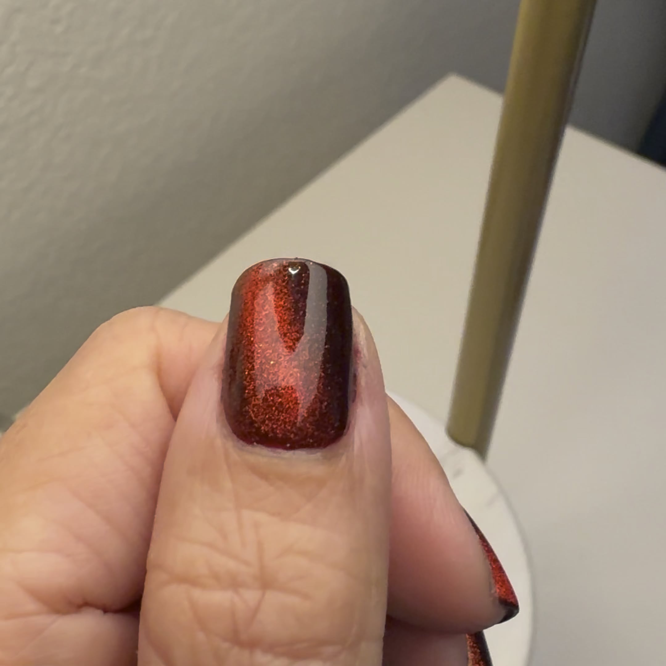 OPI base > 1 coat Essie Berry Naughty > 1 coat ILNP Roulette > 1 coat BKL Pomegranate Seeds > Mooncat Speed Demon QDTC