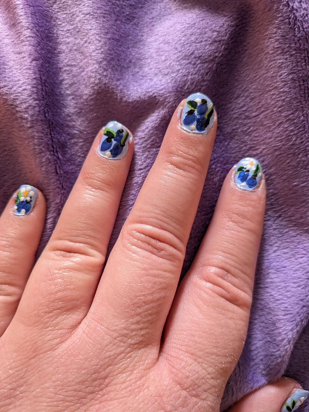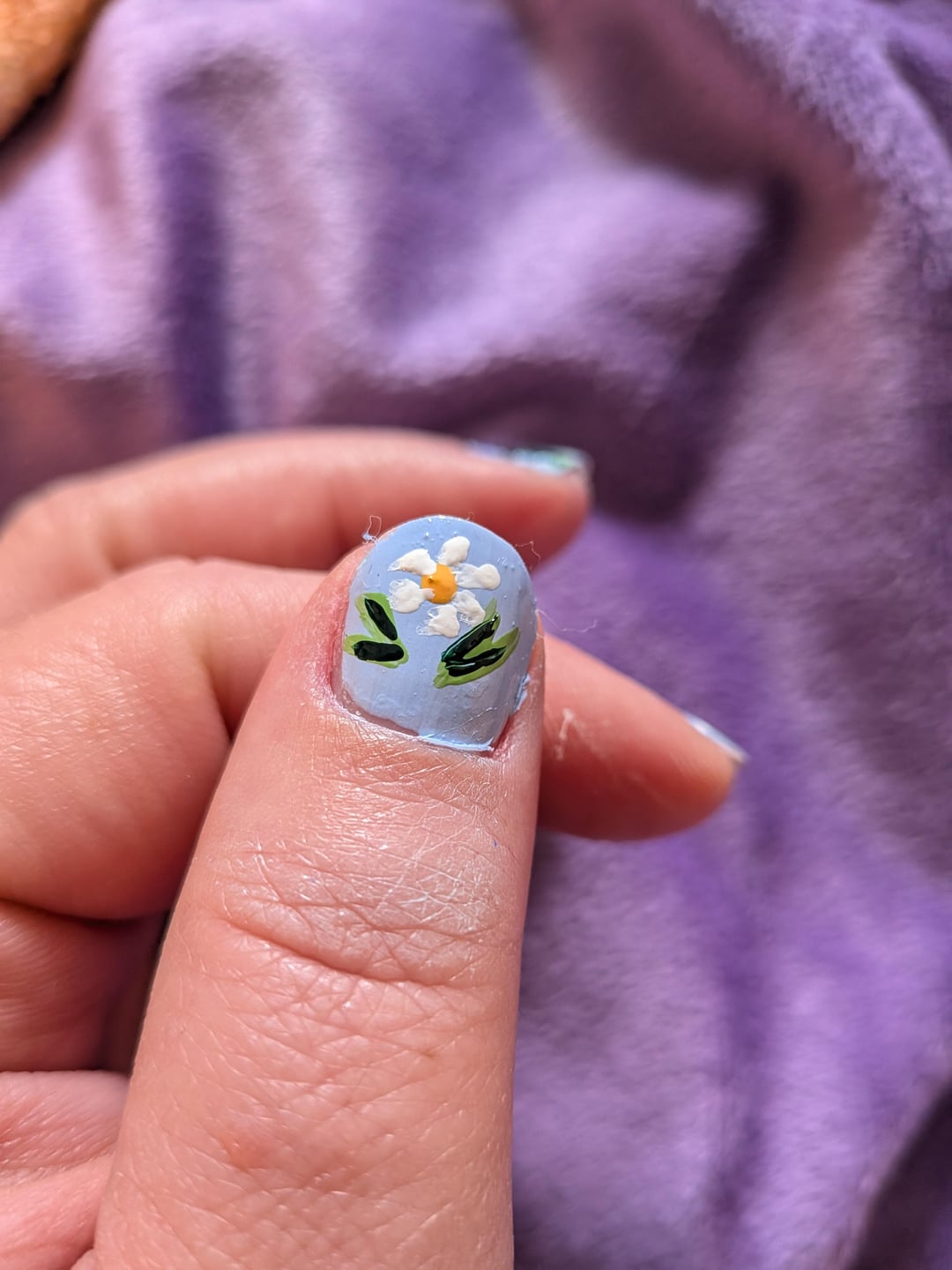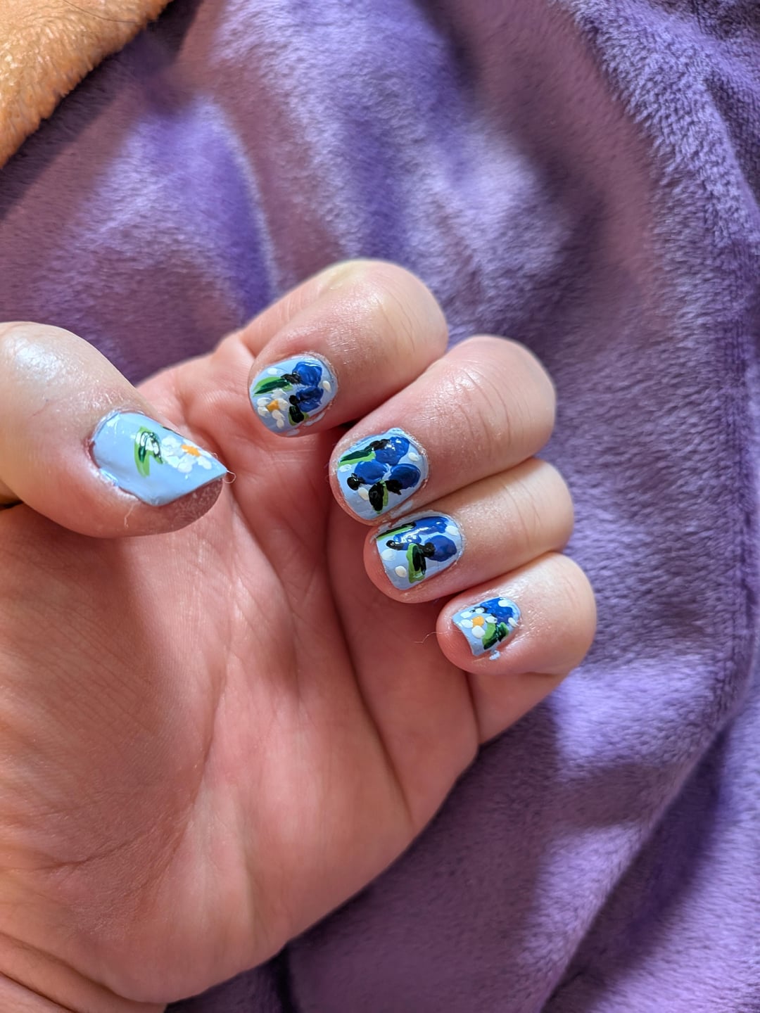 DIY nails. Used my miniature paint brushes for thr first time. Need to work on giving flowers on my non dominant hand. In love with the design though perfect with welcoming in the new year.