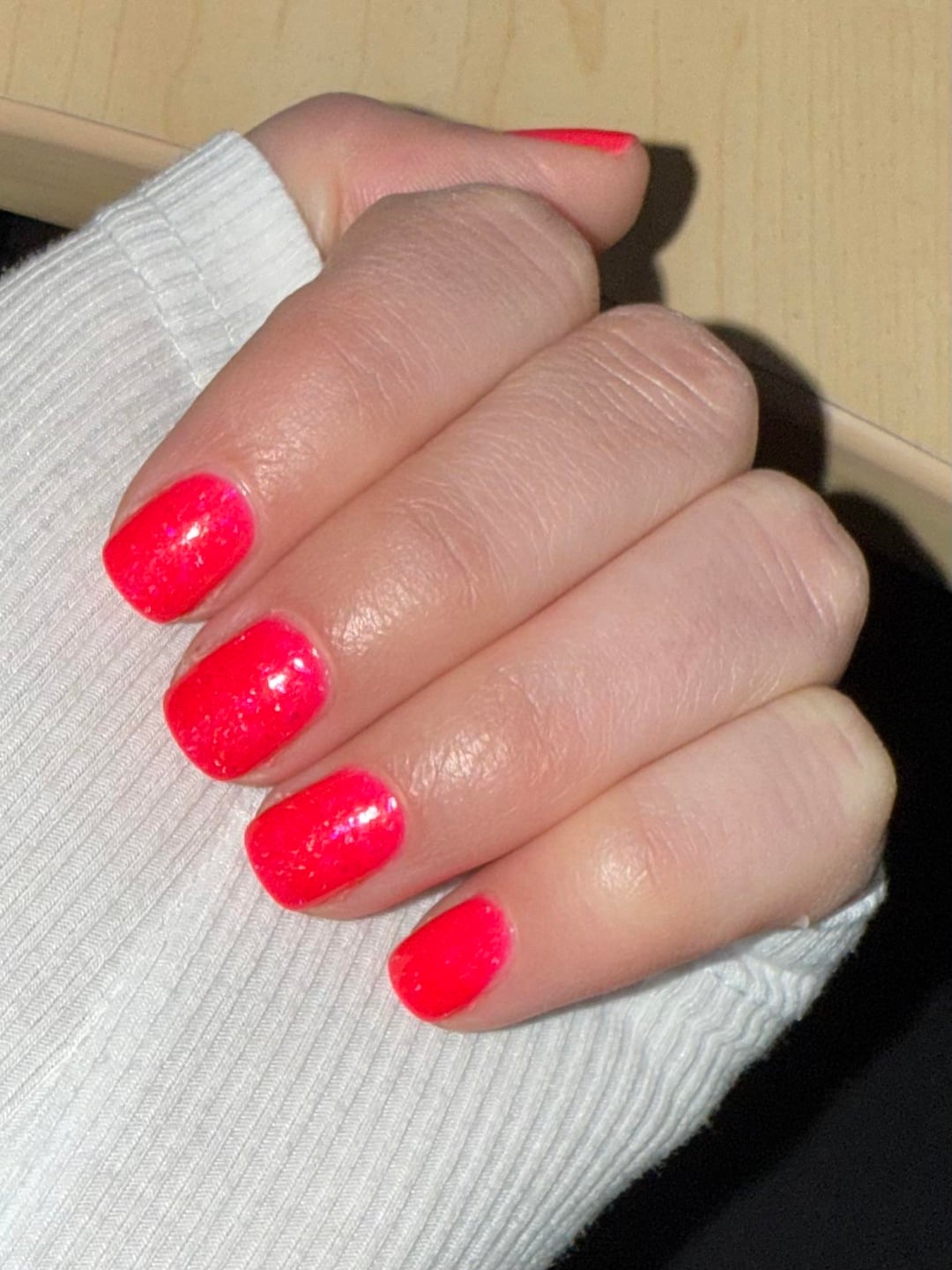 Decided I needed something bright and fun for going back to work in cold, grey ass January and I’m lovinggggg this one. Pics don’t do it justice of course. It’s so neon in person, and the flakies are much more visible. It’s keeping my SAD at bay for the moment lol