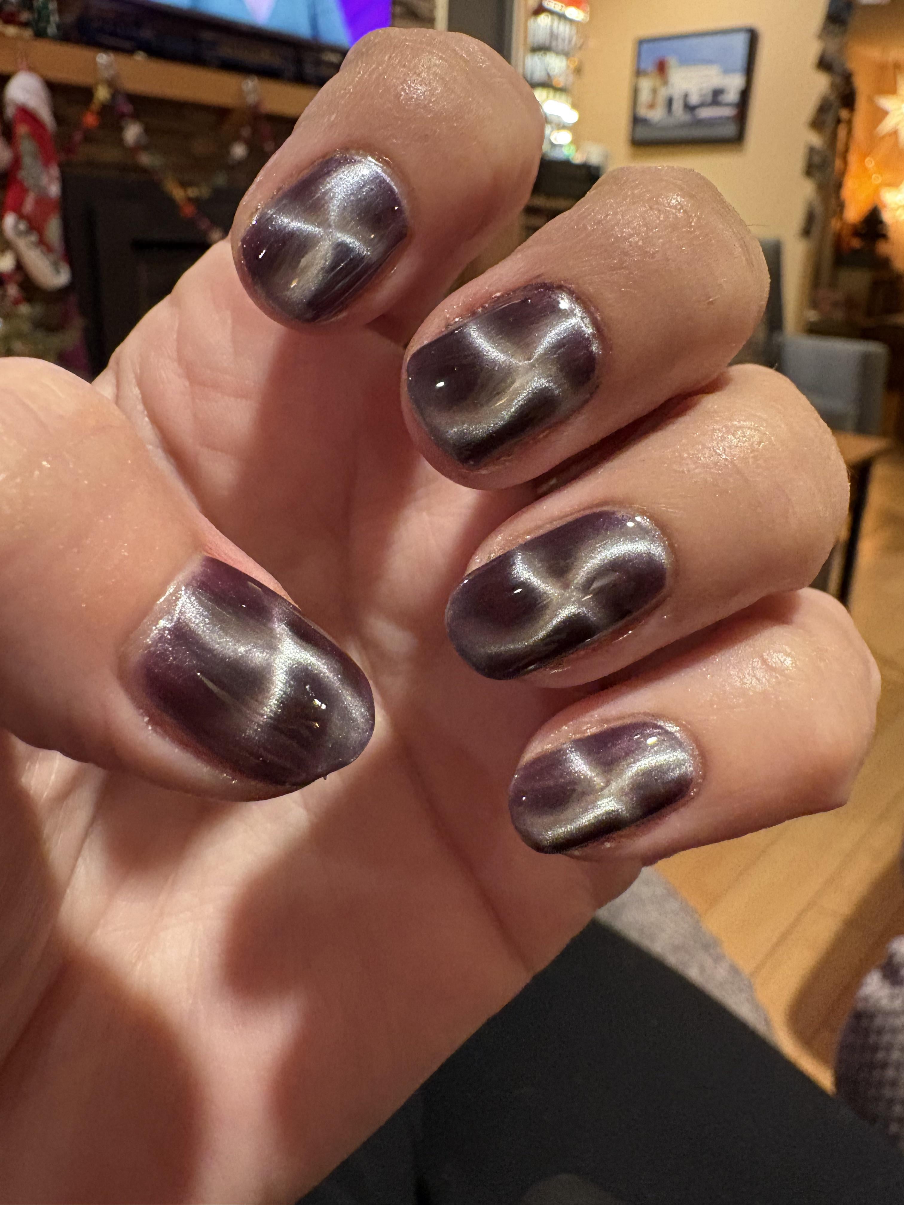 Very similar to a couple of days ago, one coat LynBDesigns B-Stronger, one coat Mooncat hard as nails base coat, 3 coats BKL Choo-Choo, one coat DRK Magic Effect, one coat DRK Seal Glaze, and one coat BKL I’m fast, Very Fast QDTC. I’ll try to keep this one on longer than two days! I miss the grungy chartreuse of the last one.