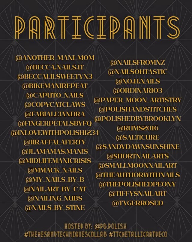 My good friend is a huge fan of art deco, and I had some unused ILNP metallics that were begging to get used before summer, so I was very excited when I saw this collab pop up on Instagram. How hard could it be?