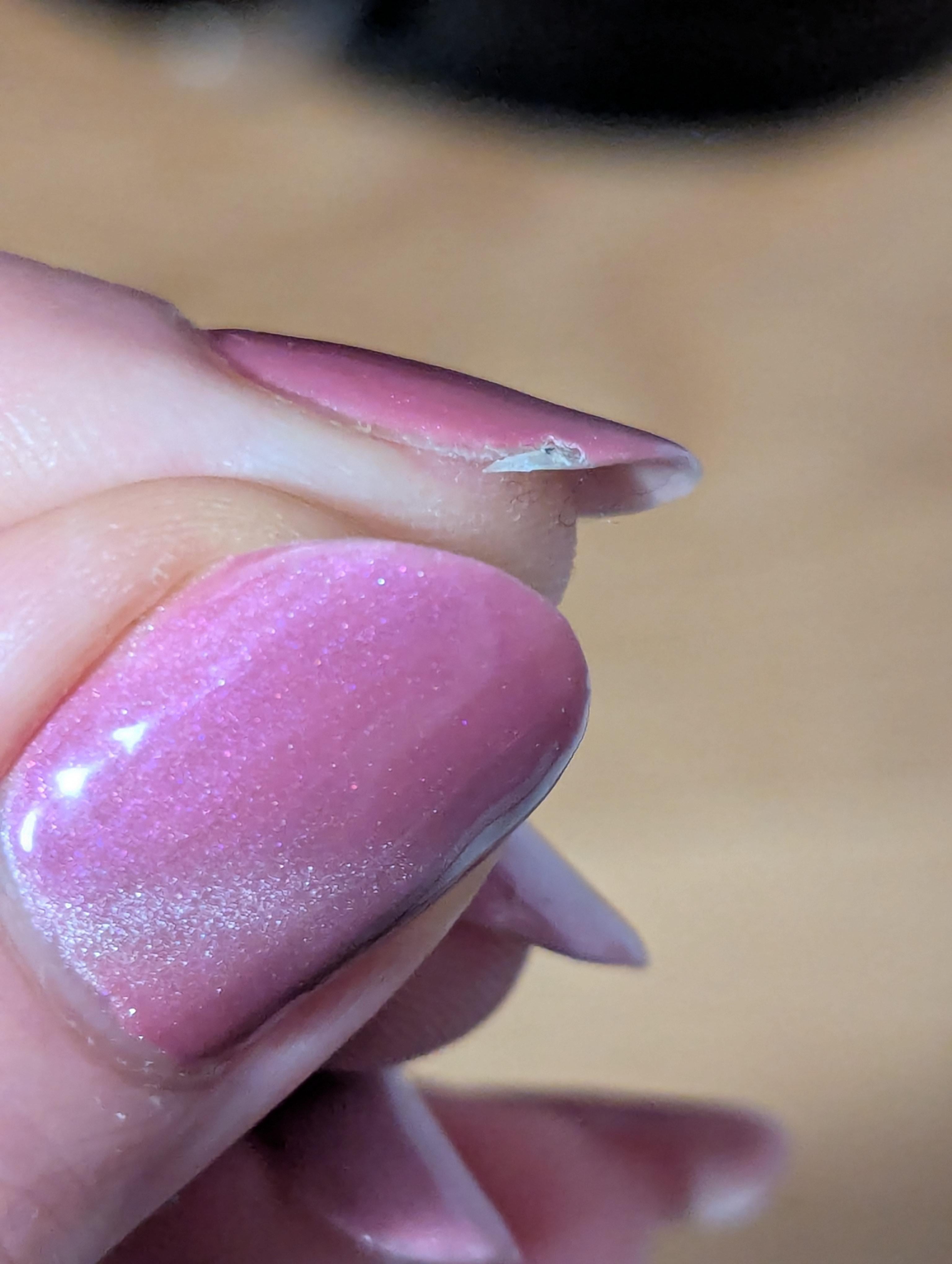 Got an unexpected two in one deal today, a chip and a tear pretty close to the nail bed. This is a 4 layer gel manicure that's 10 days old, sighh by Financial_Sport_6327