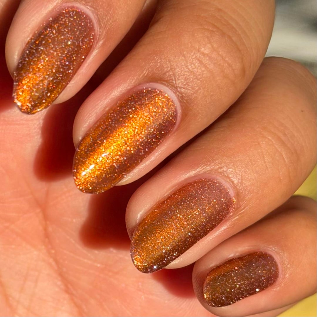 the shimmer is so unreal i literally can’t stop looking at my nails under the sun. i didn’t know how i would feel about that color on my skin tone but it’s so so pretty. we’re starting off the year good with this one !!