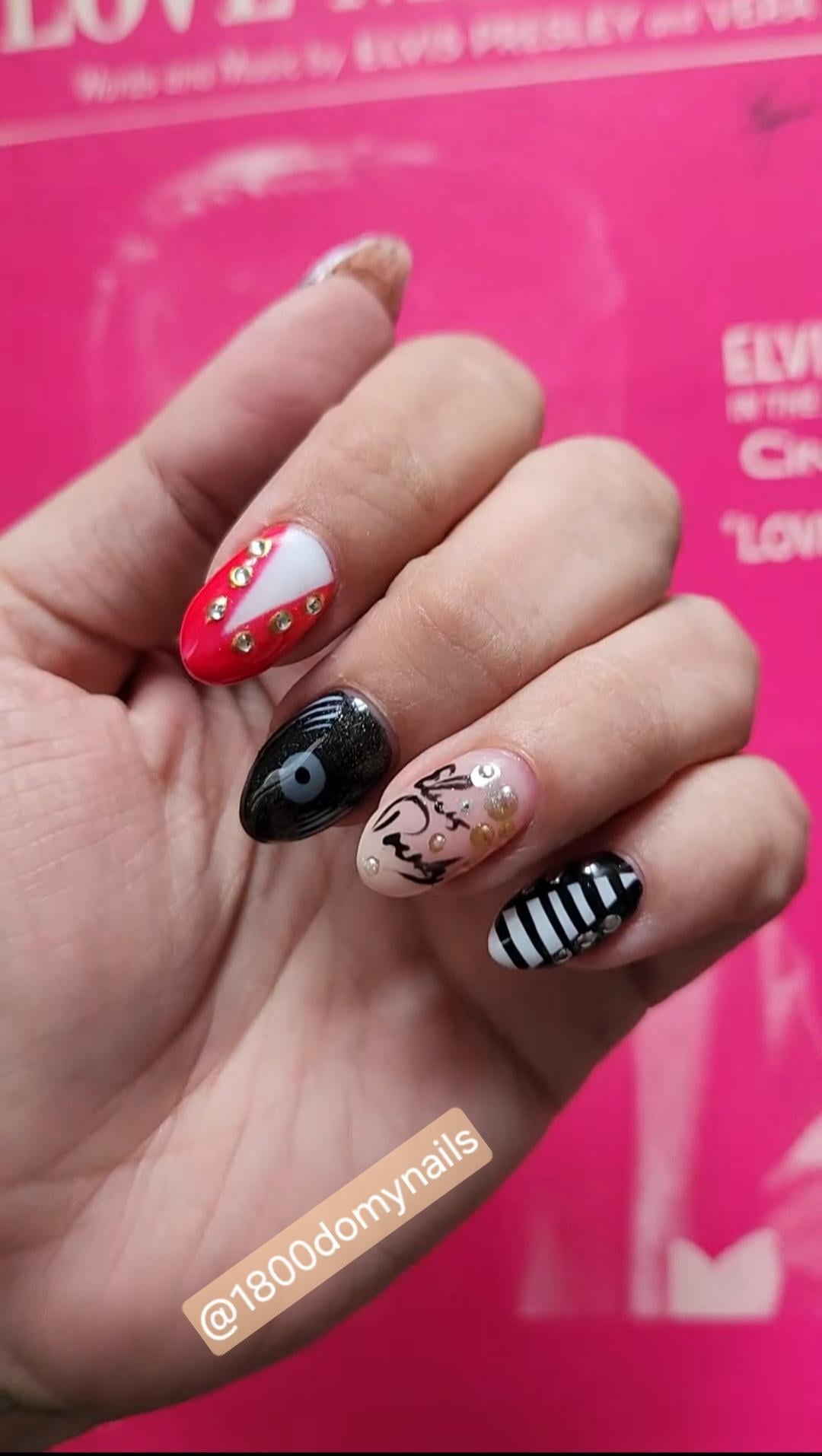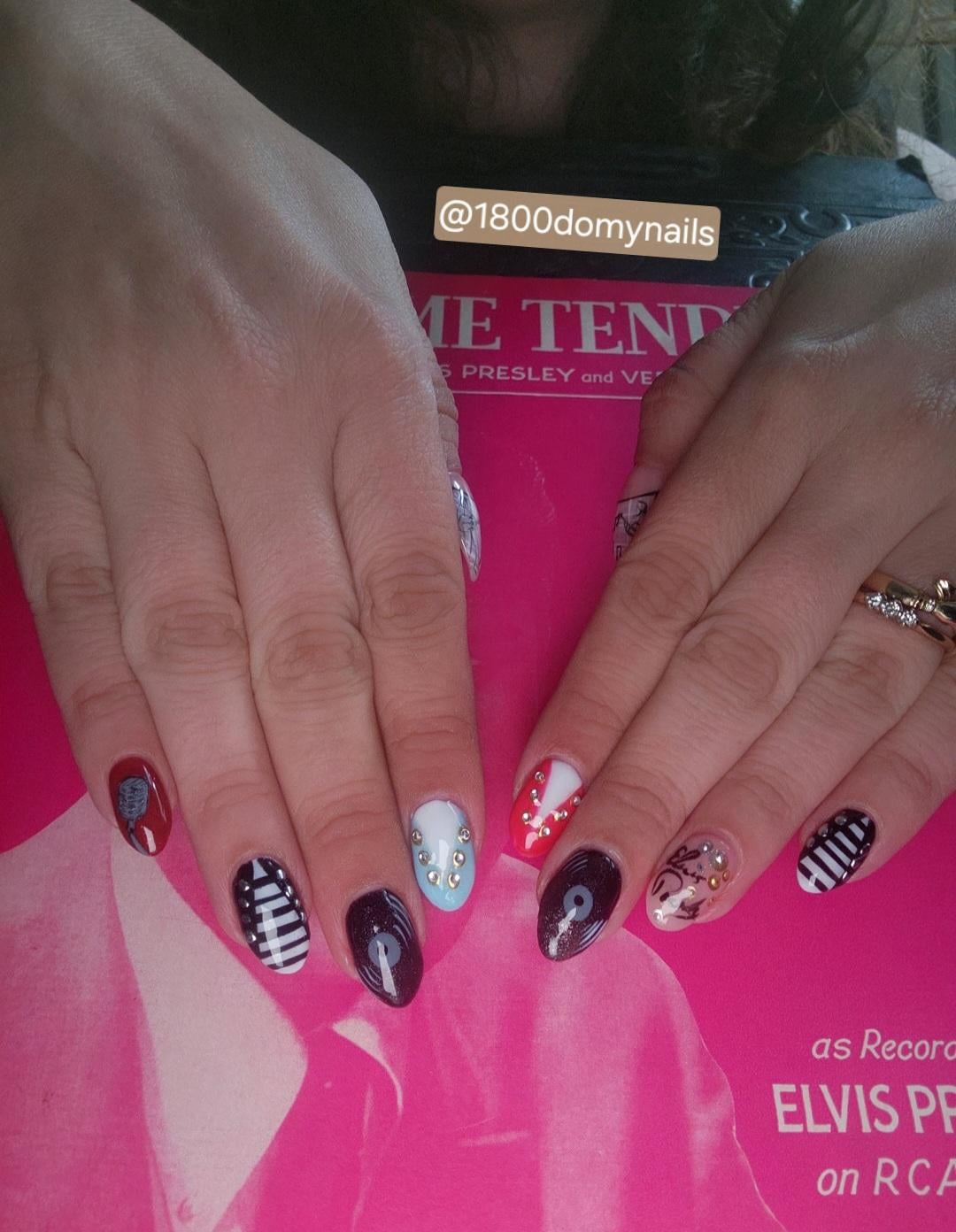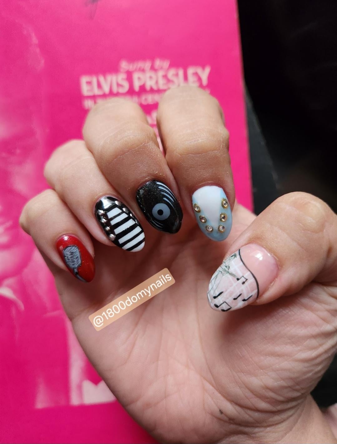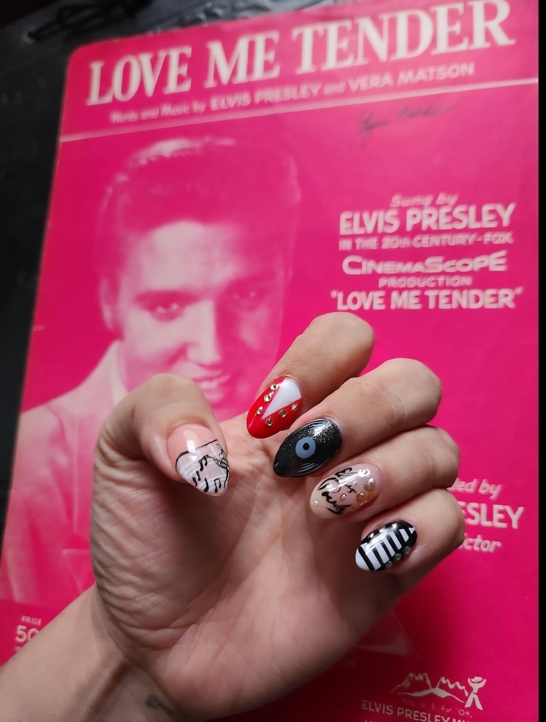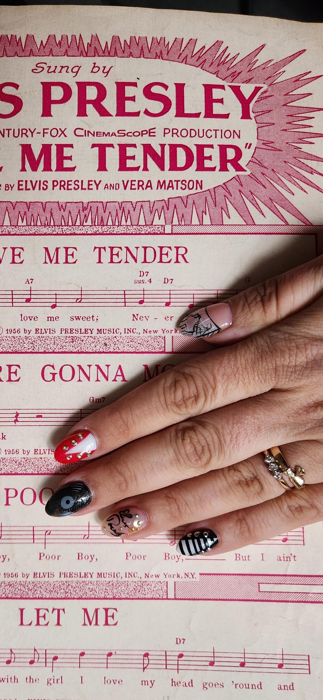 Here are the nails that my friend 1800domynails did for me when I was headed to Memphis. Happy birthday Elvis! by sitamun84