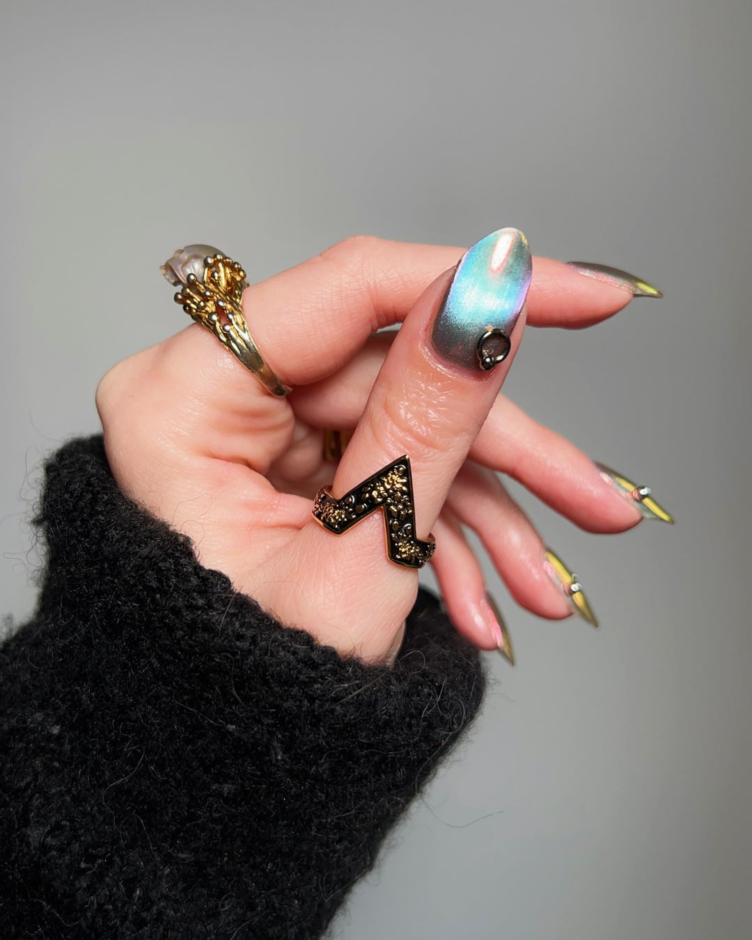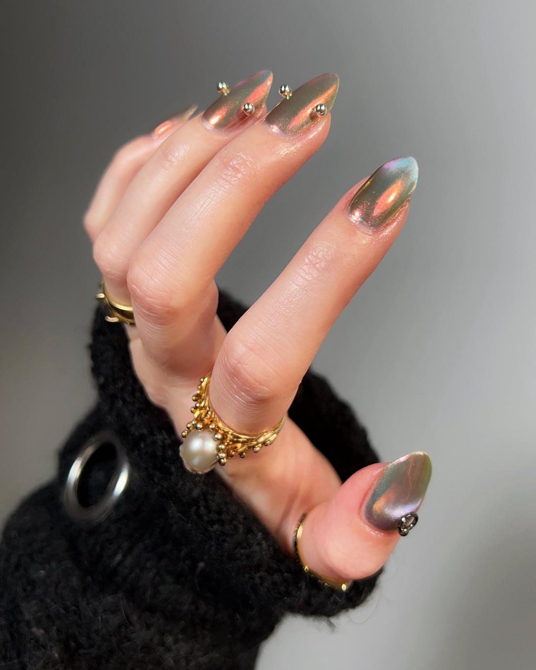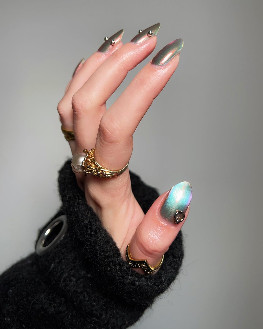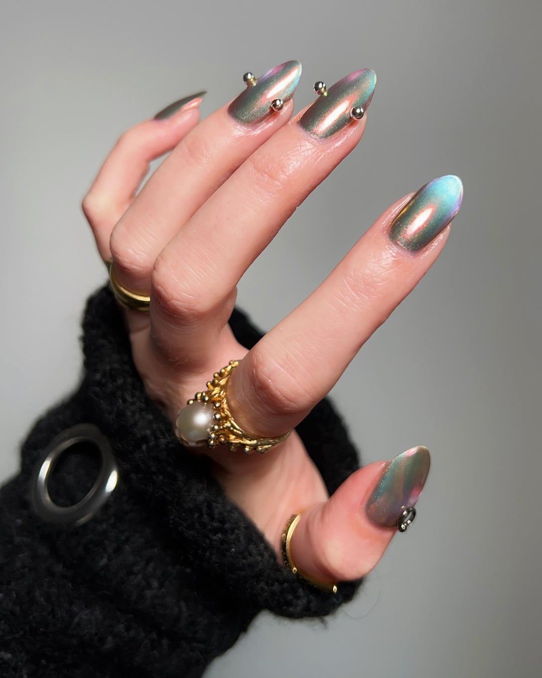 🤯🔥 WOW!!! They look amazing! I think you absolutely mastered the chrome powder. The smooth glass surface really makes the colors light up. And those piercings…such an AWESOME touch! What do you find difficult in using chrome powders with regular polish?