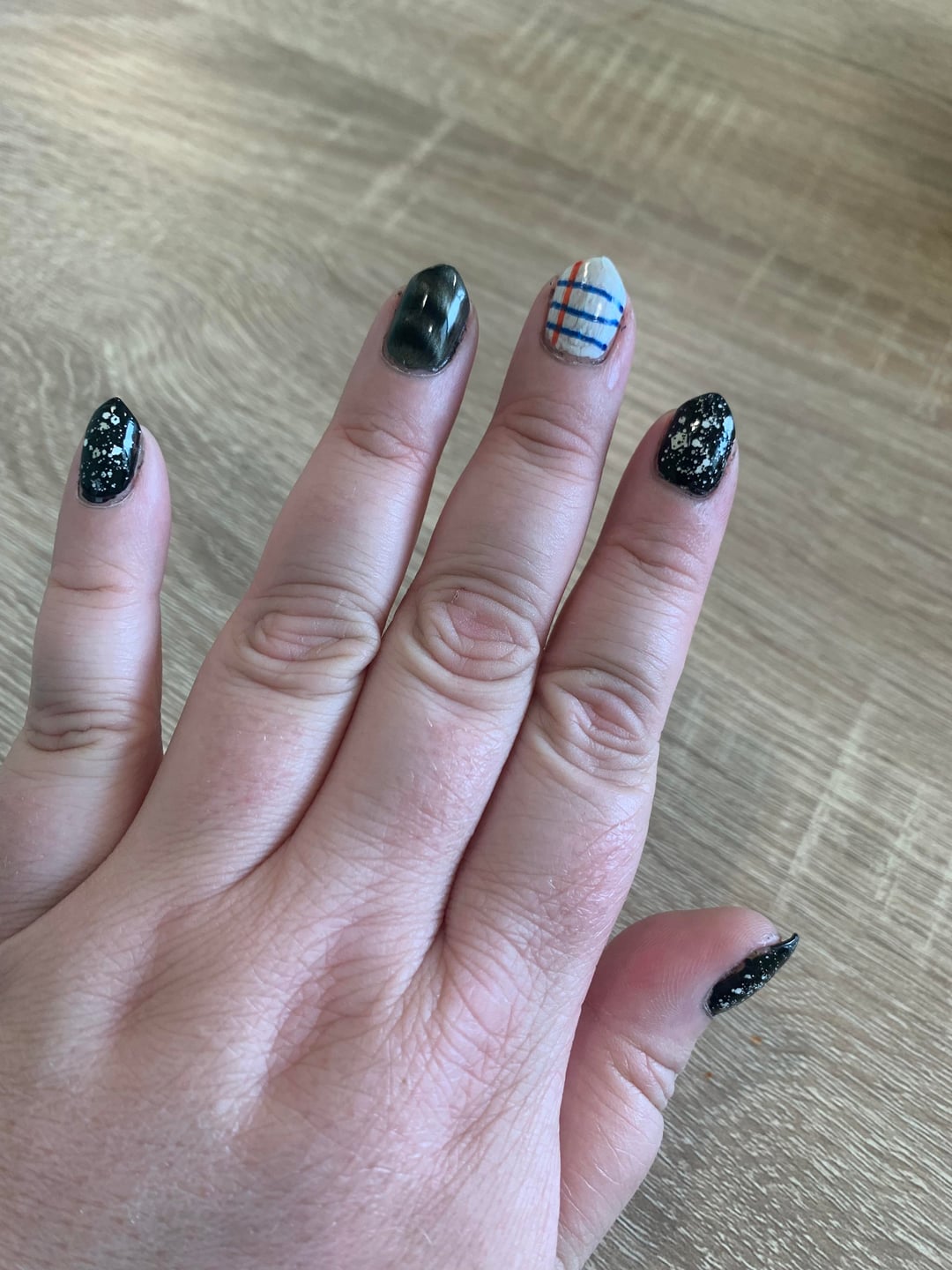 Main nails: Holo Taco One Coat Black, Hard Candy Black Tie Optional