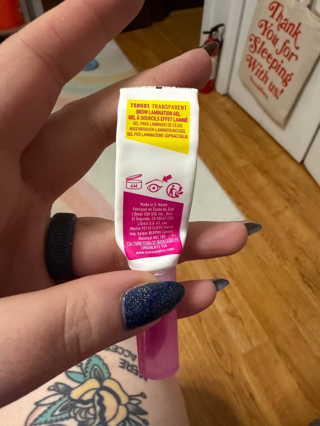 NYX the brow glue in transparent (took about 2 months for me to go through this tube)