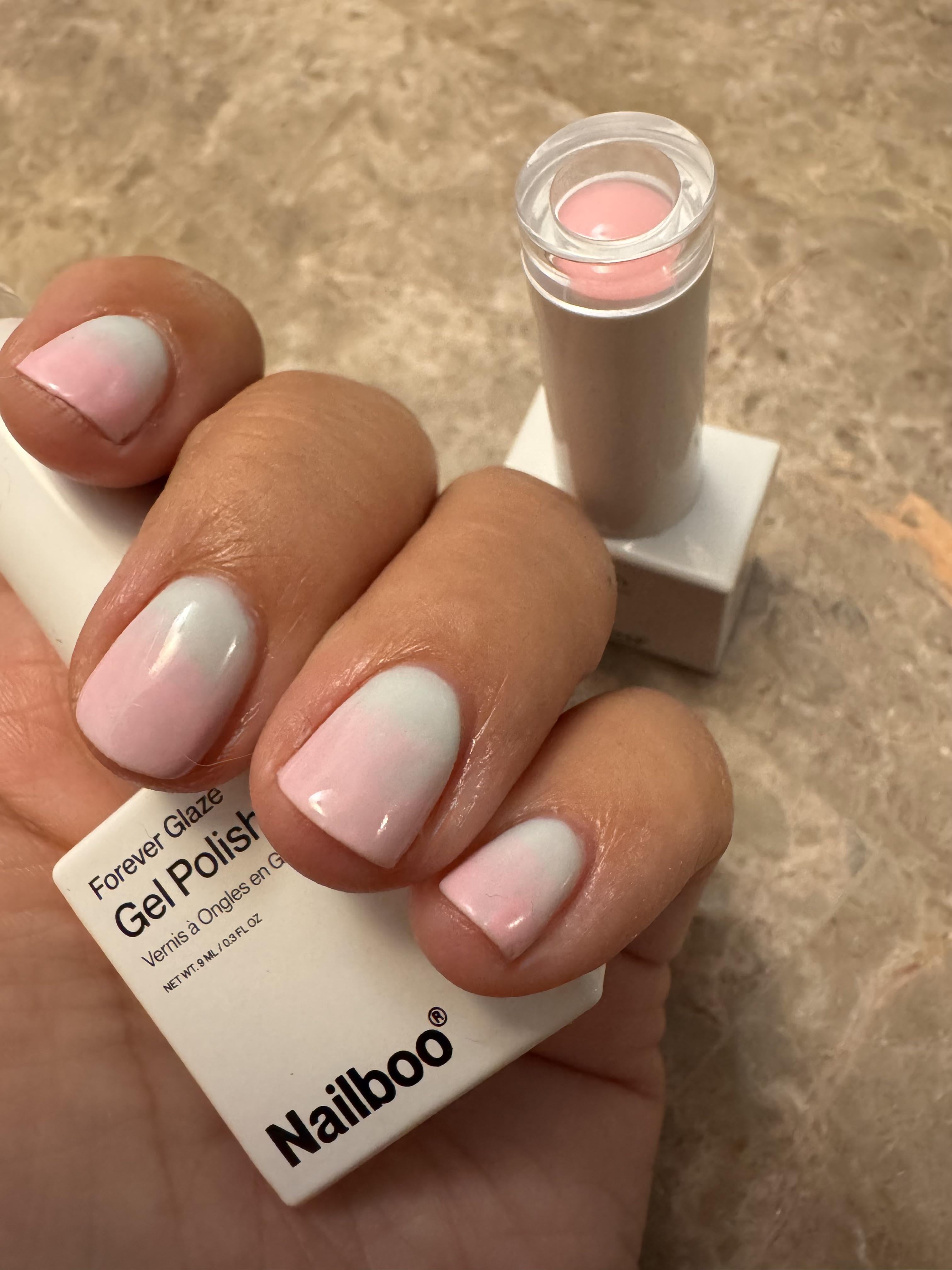 I’ve never done an ombré with gel before but I had this vision in my head. Used a clean make-up sponge I had kicking around. Nailboo in Modern Mint and Princess Pink. by mxs4235