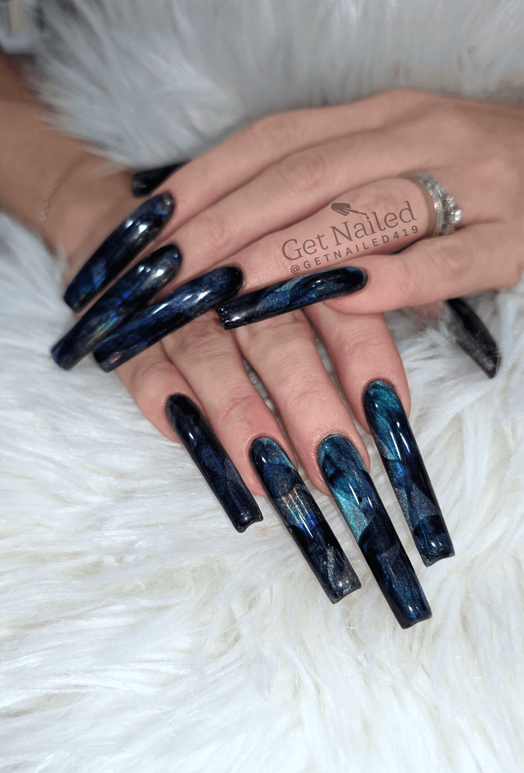 haven’t posted in a while, but just did these labradorite inspired nails on myself and wanted to share
