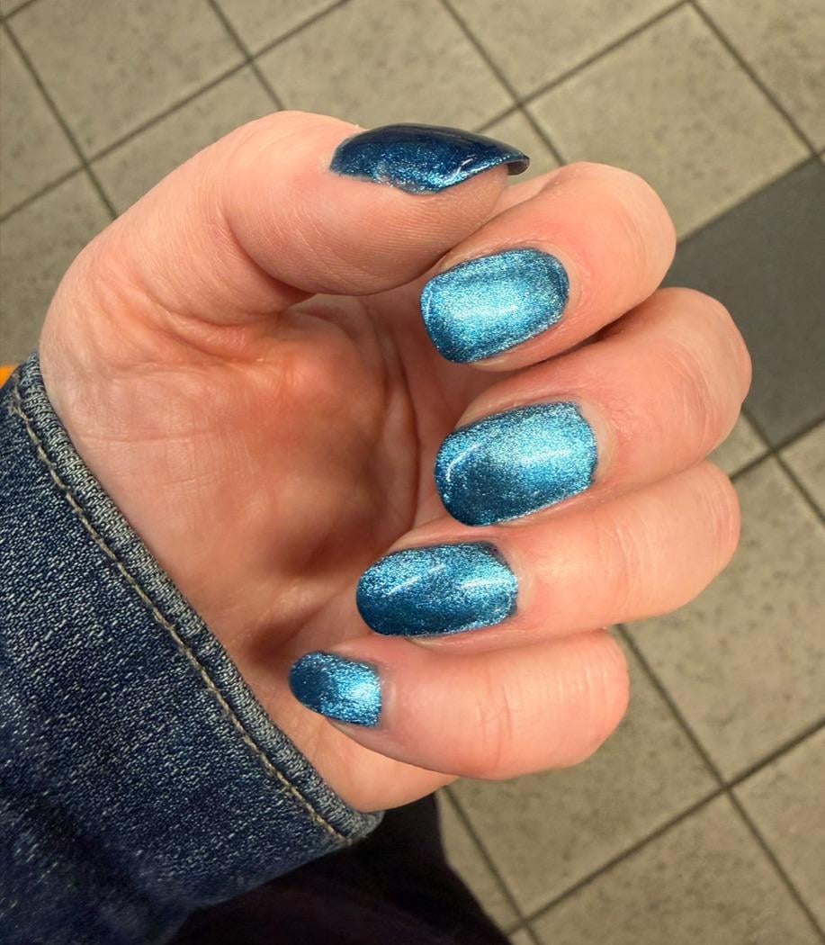 1 coat Essie Strong Start 3 coats ILNP Zero Degrees 1 coat Essie Good to Go Magnetized the 2nd and 3rd coats plus the top coat with a 30lb horseshoe. No chips for 6 days, just tip wear! by Common_Bathroom2043