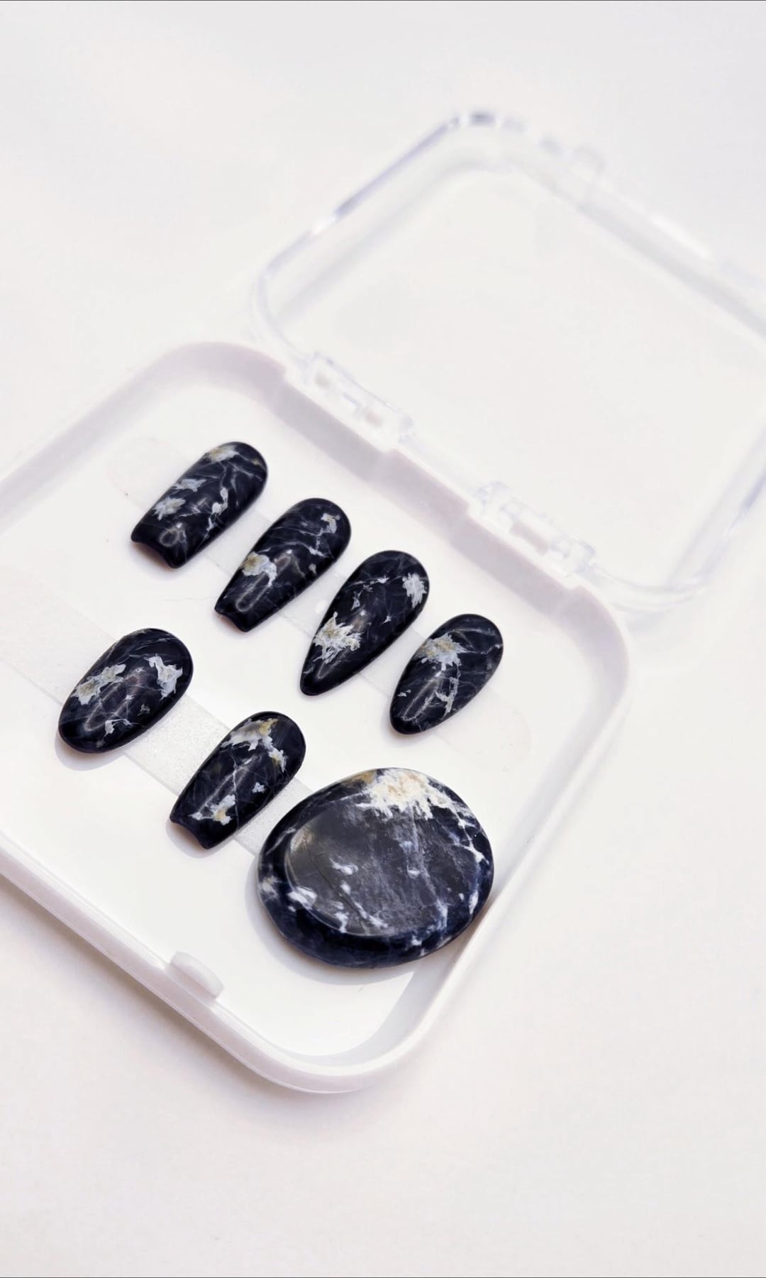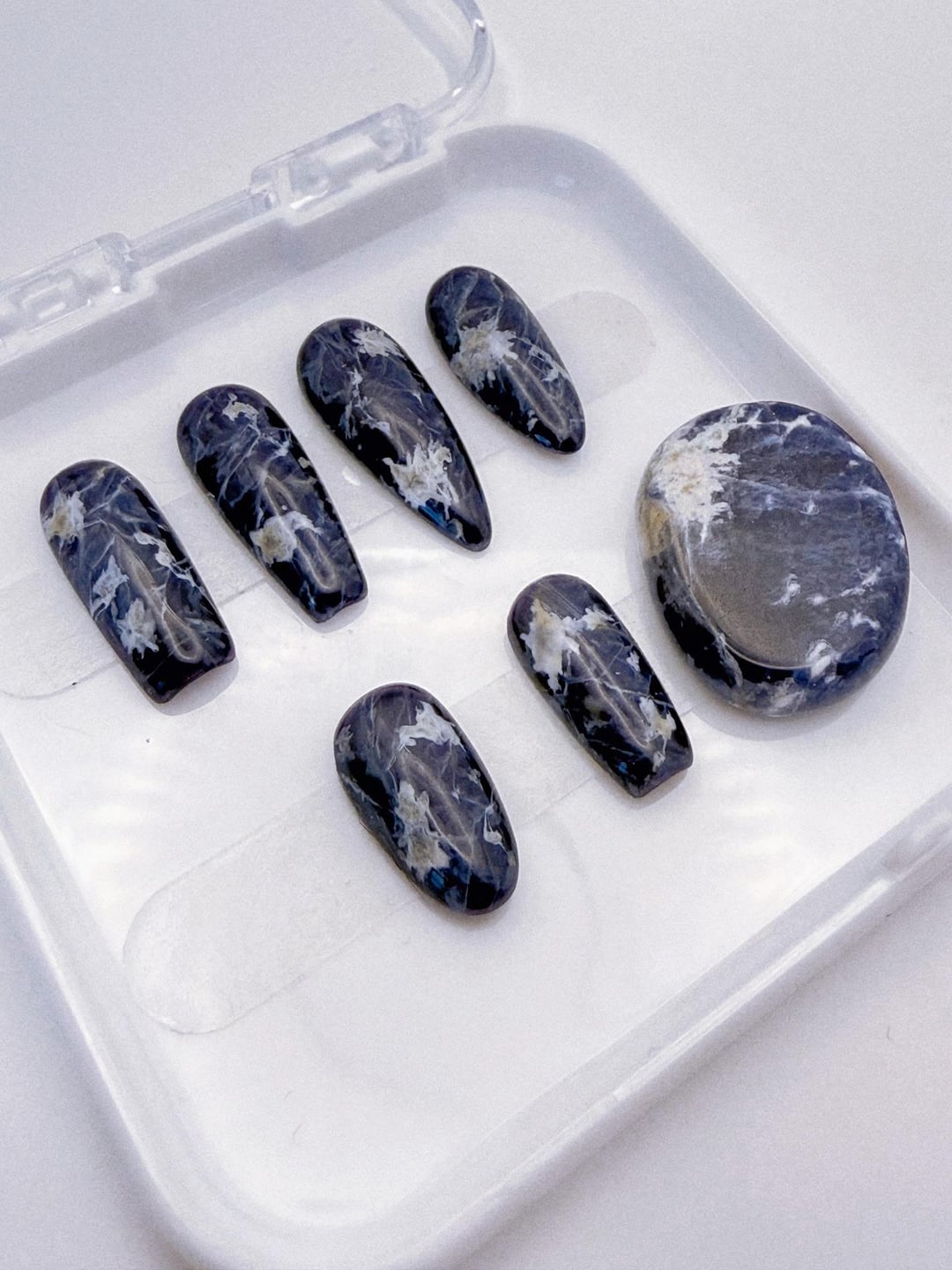 One of the pictures was taken on my mom’s phone. We were struggling to get pictures where the crystal didn’t look black; it’s more of a dark blue in person. I’d say the first picture is closer to what it looks like irl than the second.