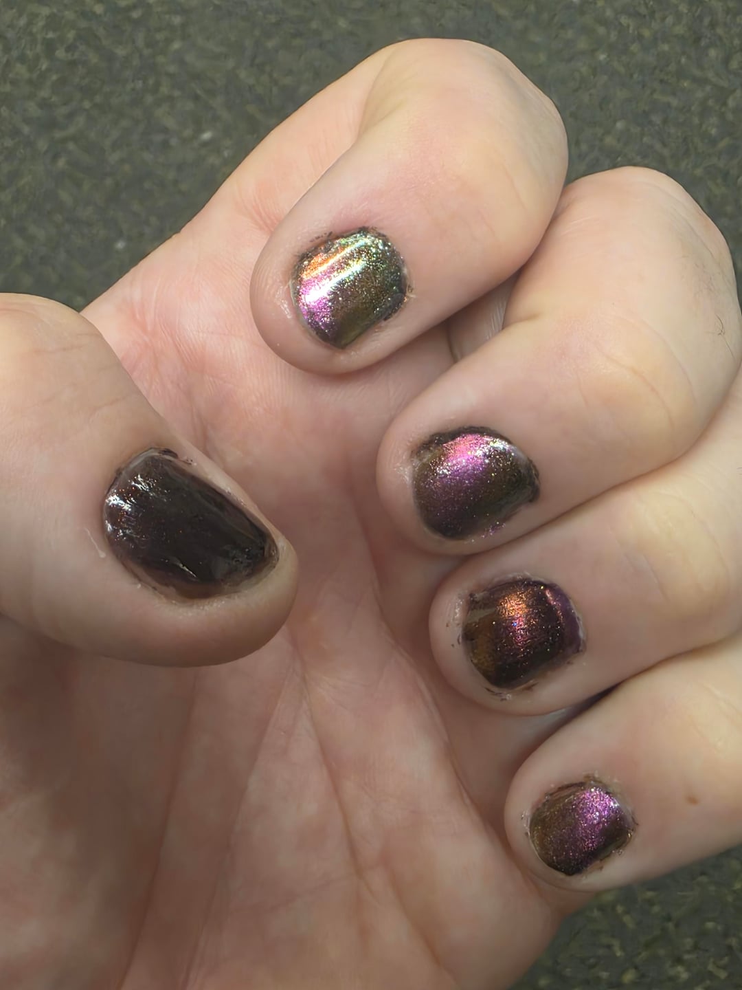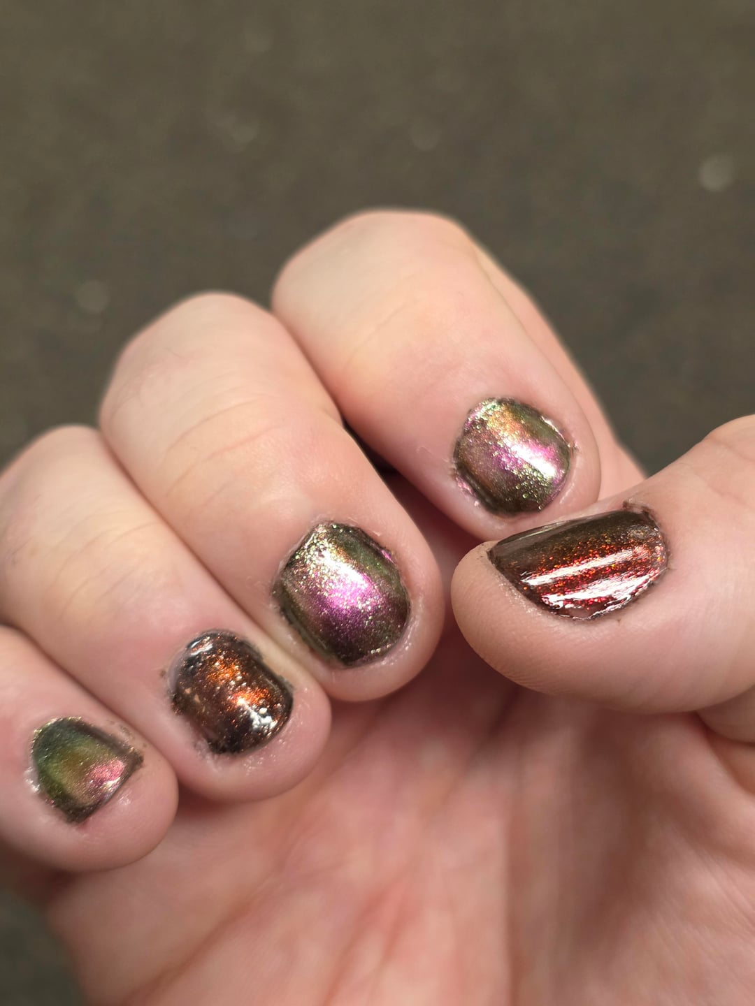 Put on a fresh coat of polish last night, and realized that my nails are the longest I've ever been able to let them grow. 25 day streak of not biting, which feels pretty good! I'm not super thrilled with how my magnetizing turned out this time around, but I figure I'm gonna end up changing again within a week anyway so what the hell.