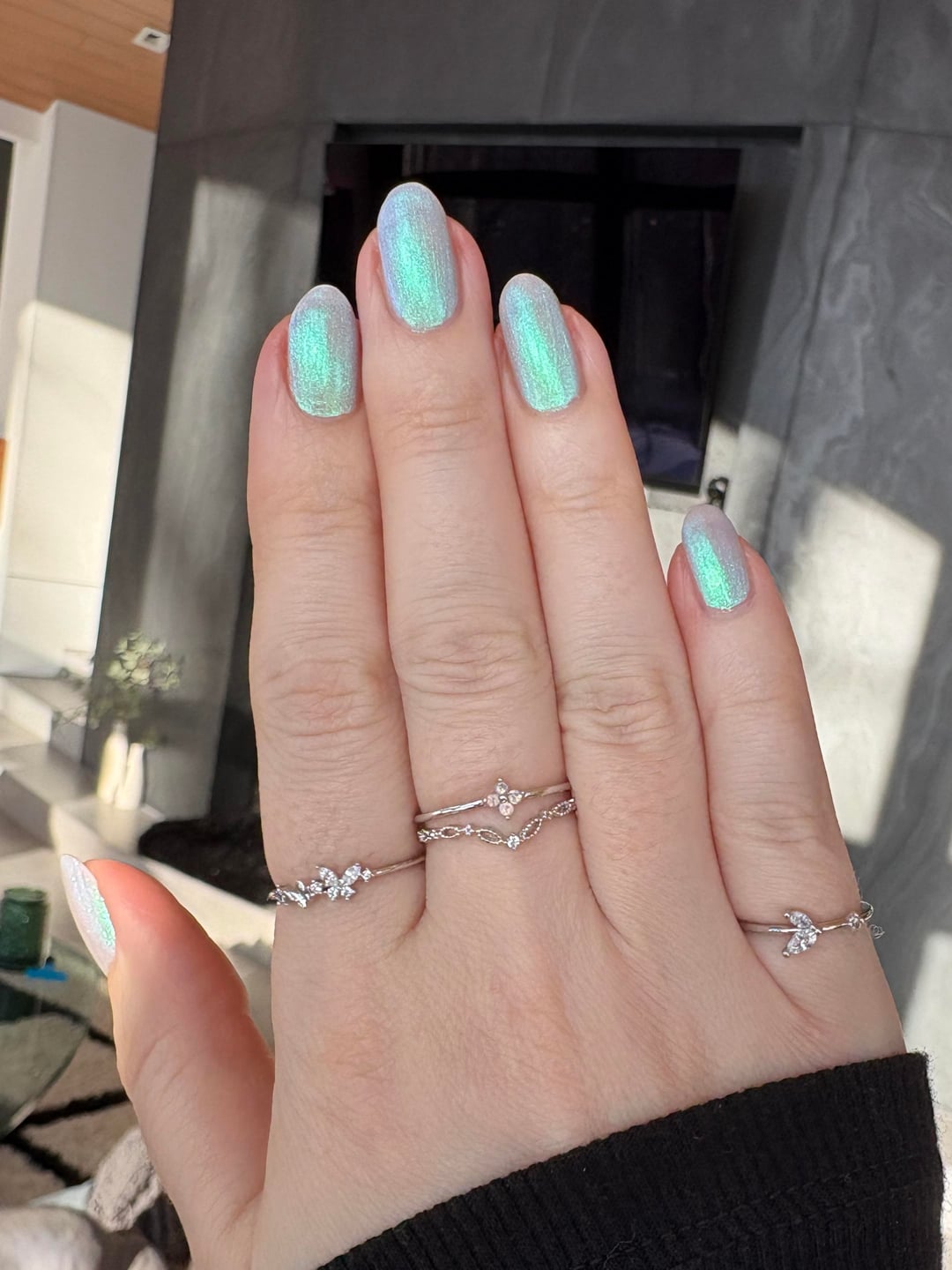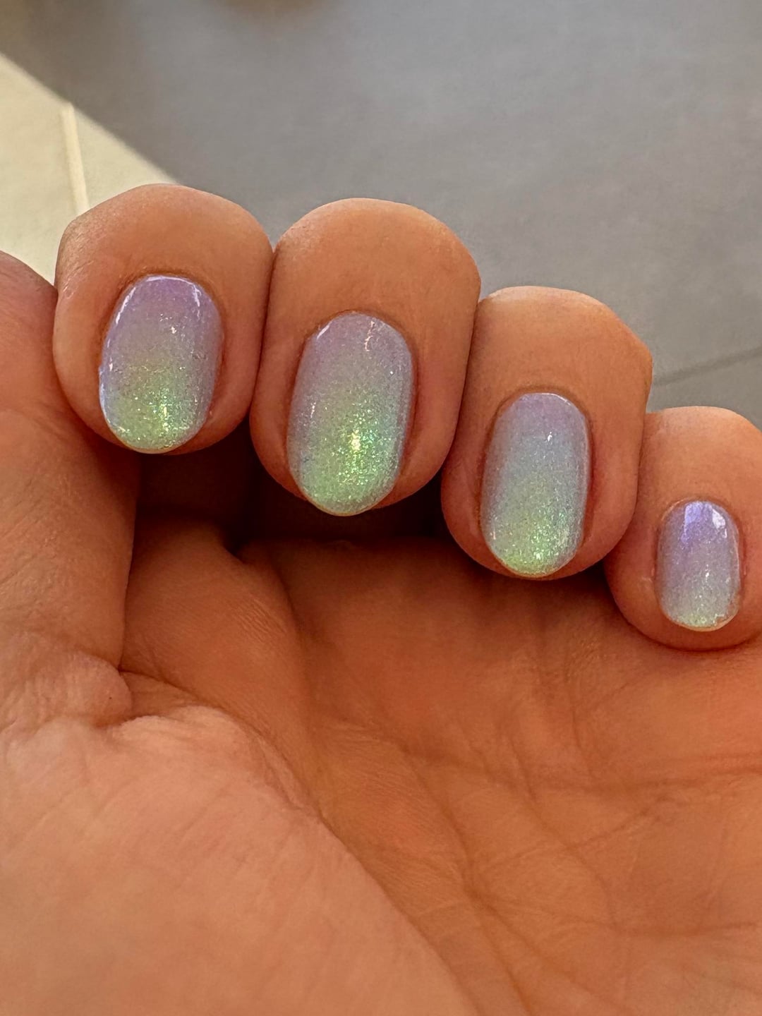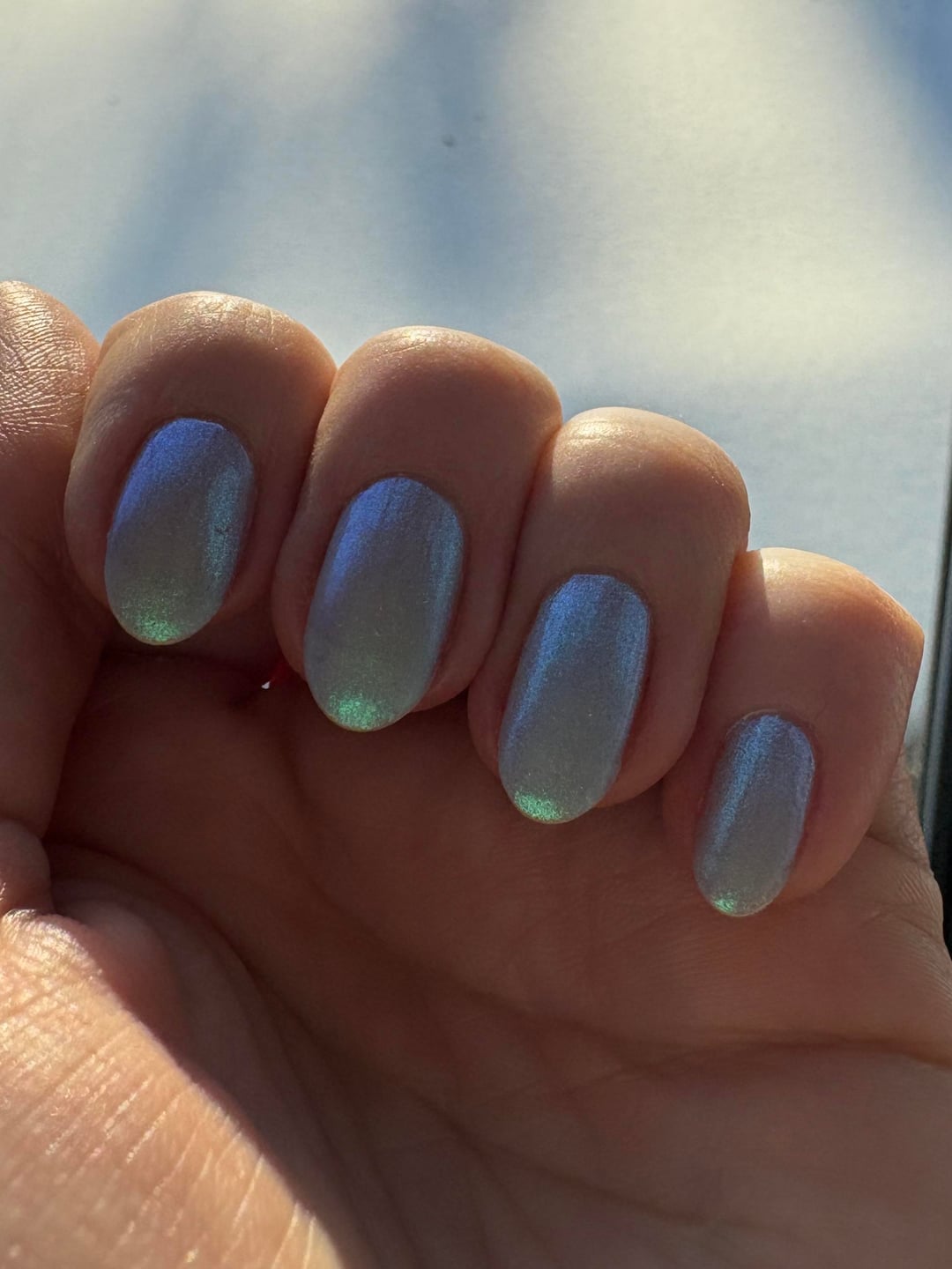 I love all my Polished for Days glowy shimmers and the new duo they released recently is such a great addition. It's a bit hard to capture all the different shades it reflects in different lighting but I tried my best 😅 Did two coats and you can still see a bit of my nail line peeking through.