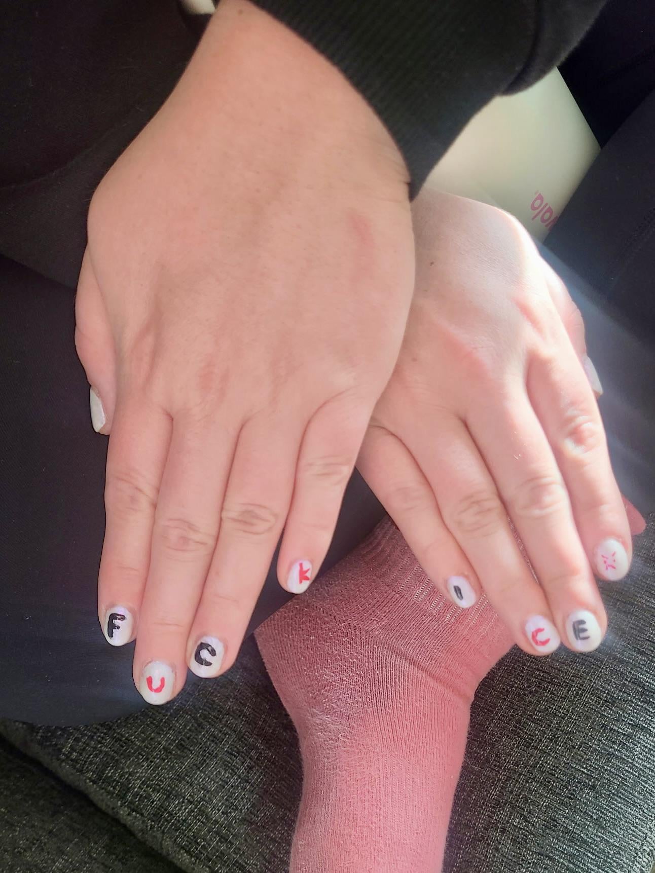 “Ice fuck” unless I crossed my hands…. Essie licorice, Essie not red-y for bed, mooncat moon jelly and their top coat speed demon by Salamylidwontfit