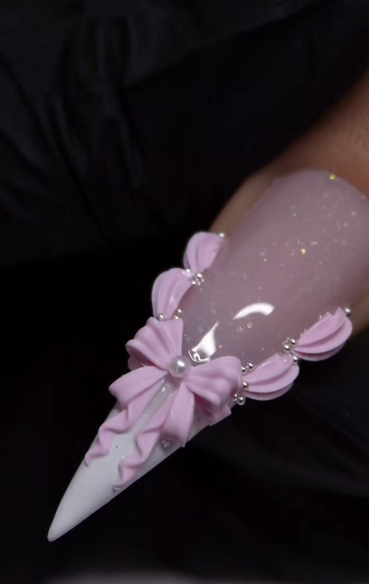 and third, it could be done by thickening the gel with embo powder, which would result in a “meringue texture” kind of similar to frosting. idk if i can link videos, but a great nail channel on youtube, sizali, did these meringue nails, in case you’d like to check out for yourself.