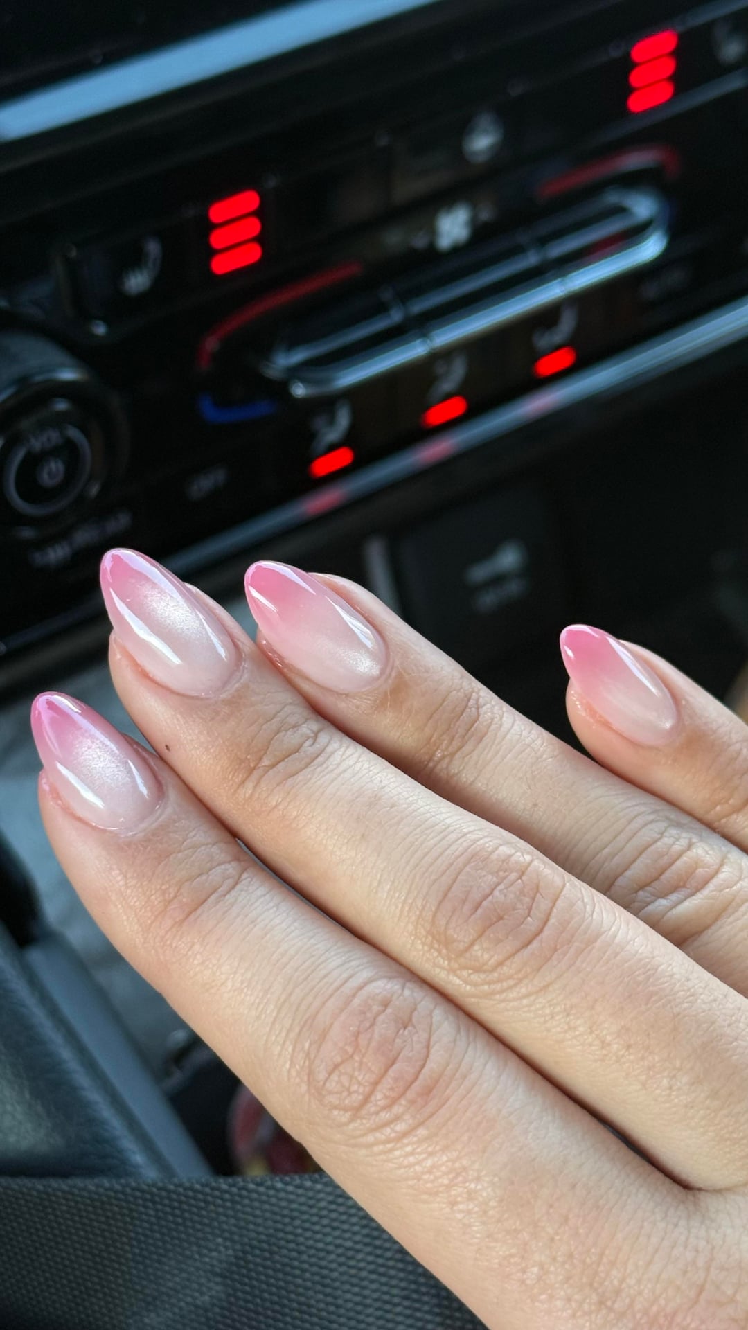Damn this is so soft and pretty. the silver cat eye with that blended pink tip looks insanely clean. and the color shift in different lighting is such a nice touch.