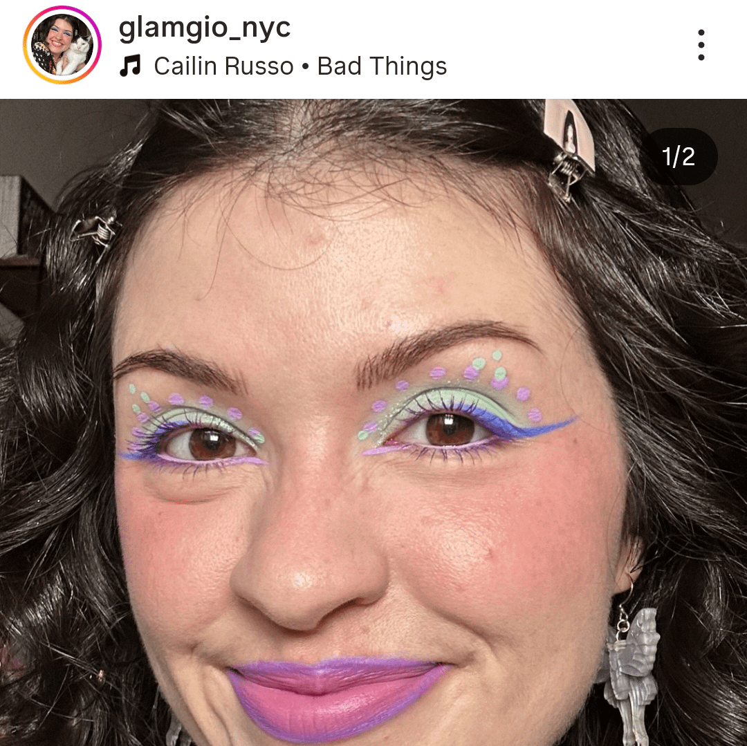 I'm not trying to be a hater but i need to know if other people think this is crazy or if it's just me. i usually like giovanna (glamgio_nyc) because she creates the makeup i'm interested in, graphic liner and more editorial stuff using indie brands, and she openly talks about being neurodivergent so can come across as a bit more authentic than the huge 1M+ influencers who have a more manufacturered image. however, her makeup is quite simple if you've ever worked with graphic liner and bold shapes. she mostly relies on line work rather than painting entire pictures on her eyes or anything. that in itself is completely fine!!! again that is also the makeup i enjoy and the makeup i do as well. so i can't even fathom offering advice for $40 when all i do is….dip my brush in liner and draw a line on my eyes? this just seems really ridiculous to me. and yes ik she isn't forcing anybody to buy it but i still think it's silly. i included a screenshot of her post about the tutorial, the google docs form with the price and some screenshots of her makeup from her IG profile.