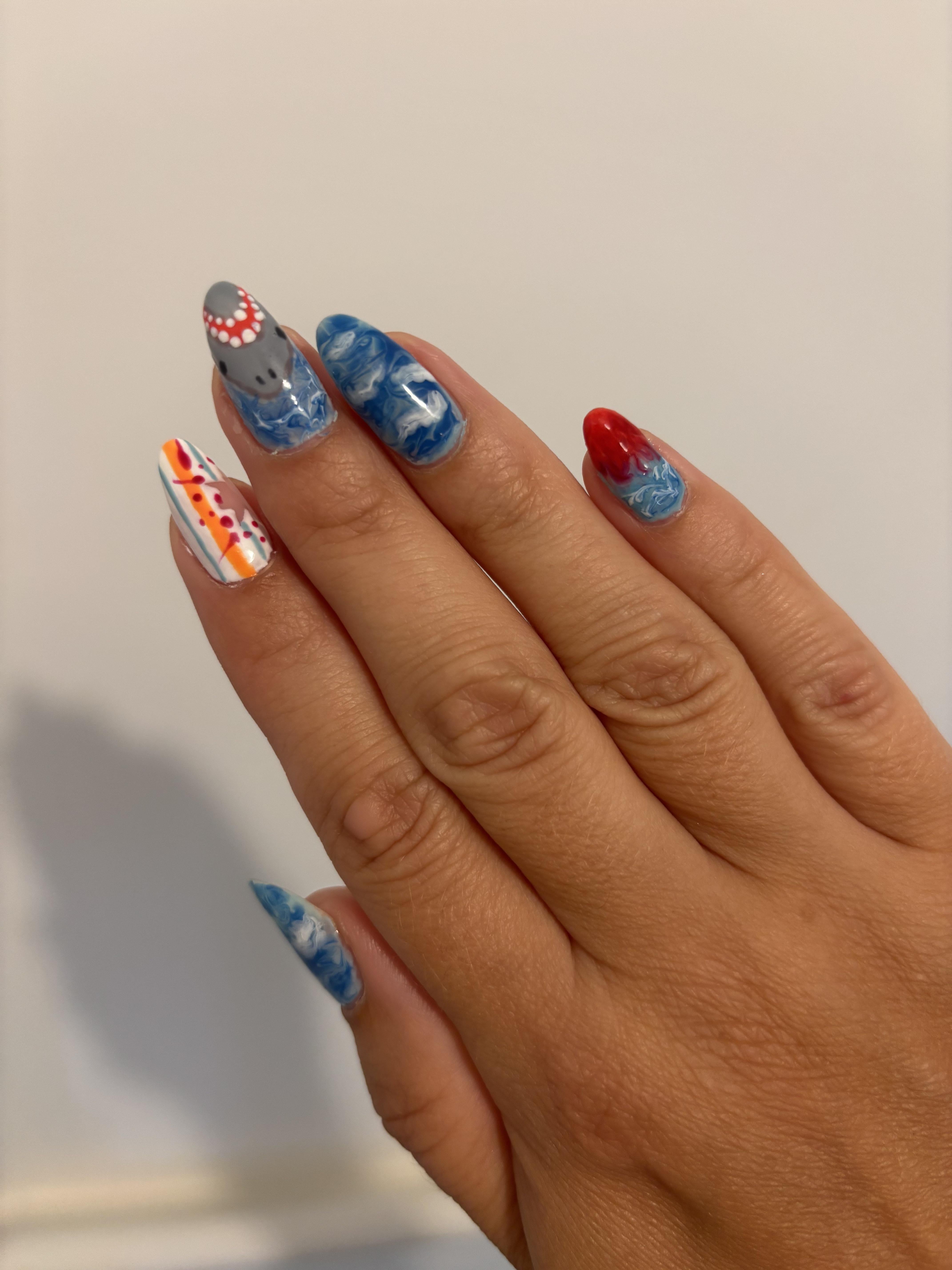 A set I hand painted in the summer on my natural nails. One of my favourites that I’ve done