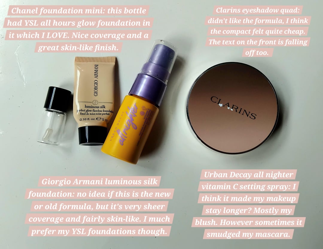 This month I did the amazing. I finished 32 products. This is probably the highest amount I will ever finish in one month. Most were almost empty anyways as I've had some of them for almost 2 years now. I only managed to finish 18 lip balms because all of them only had like 1-2 days of use left in them. I had to cut them or take the stopper off to get out the last bits of product (except Nyx lol). Each item I gave a short review for, and the last 2 photos indicate how many products I have yet to finish in my collection. I'm aiming to get my makeup/skincare down from 51 to 40 before buying anymore. And aim to get my perfumes from 7 to 6 before buying anymore. Other items crossed out have already been decluttered, given away or finished in the last days of December!