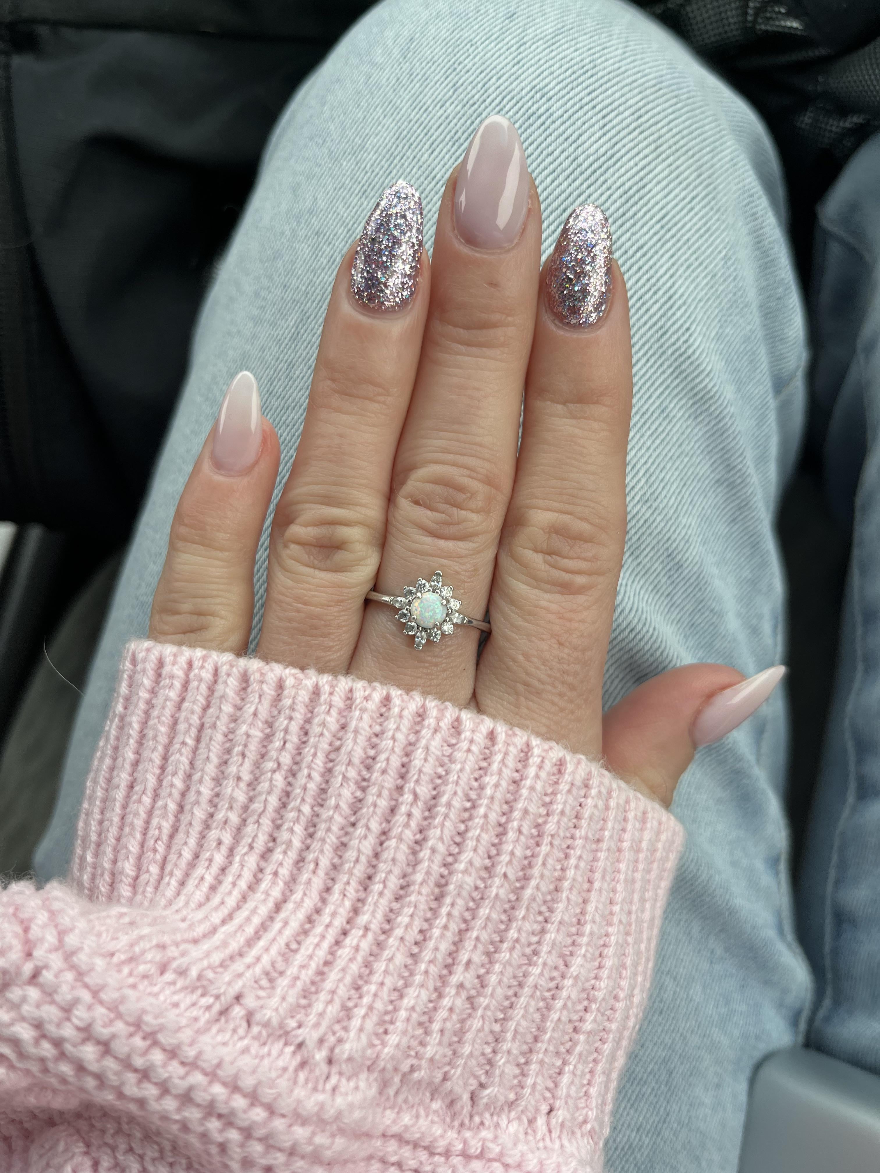 What a lovely picture! The nails, the sleeve, the ring – so pretty 💕