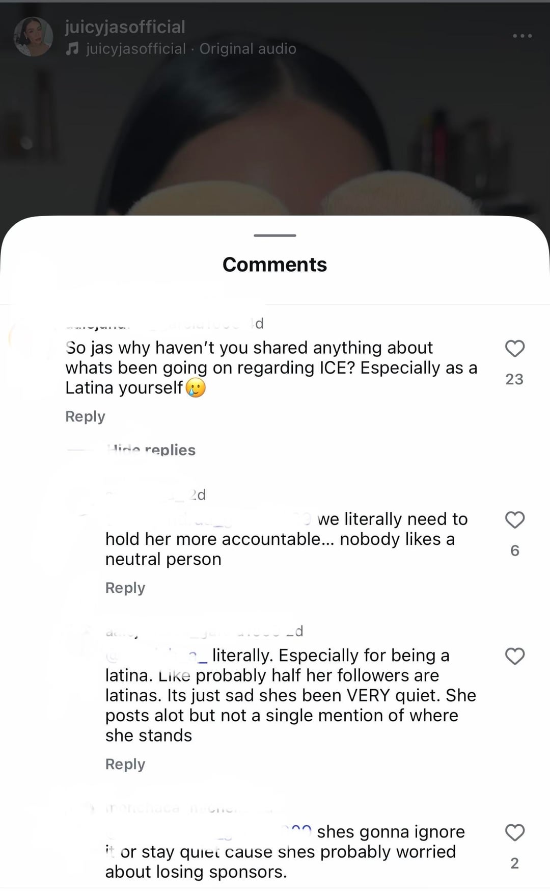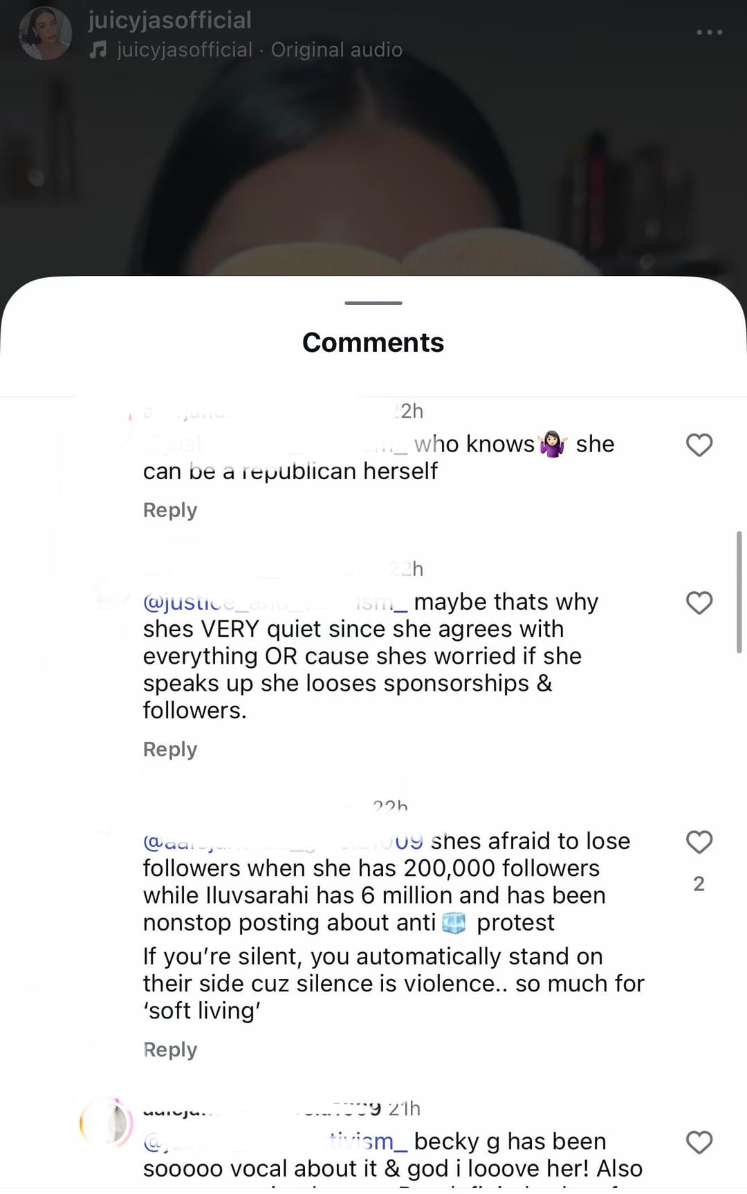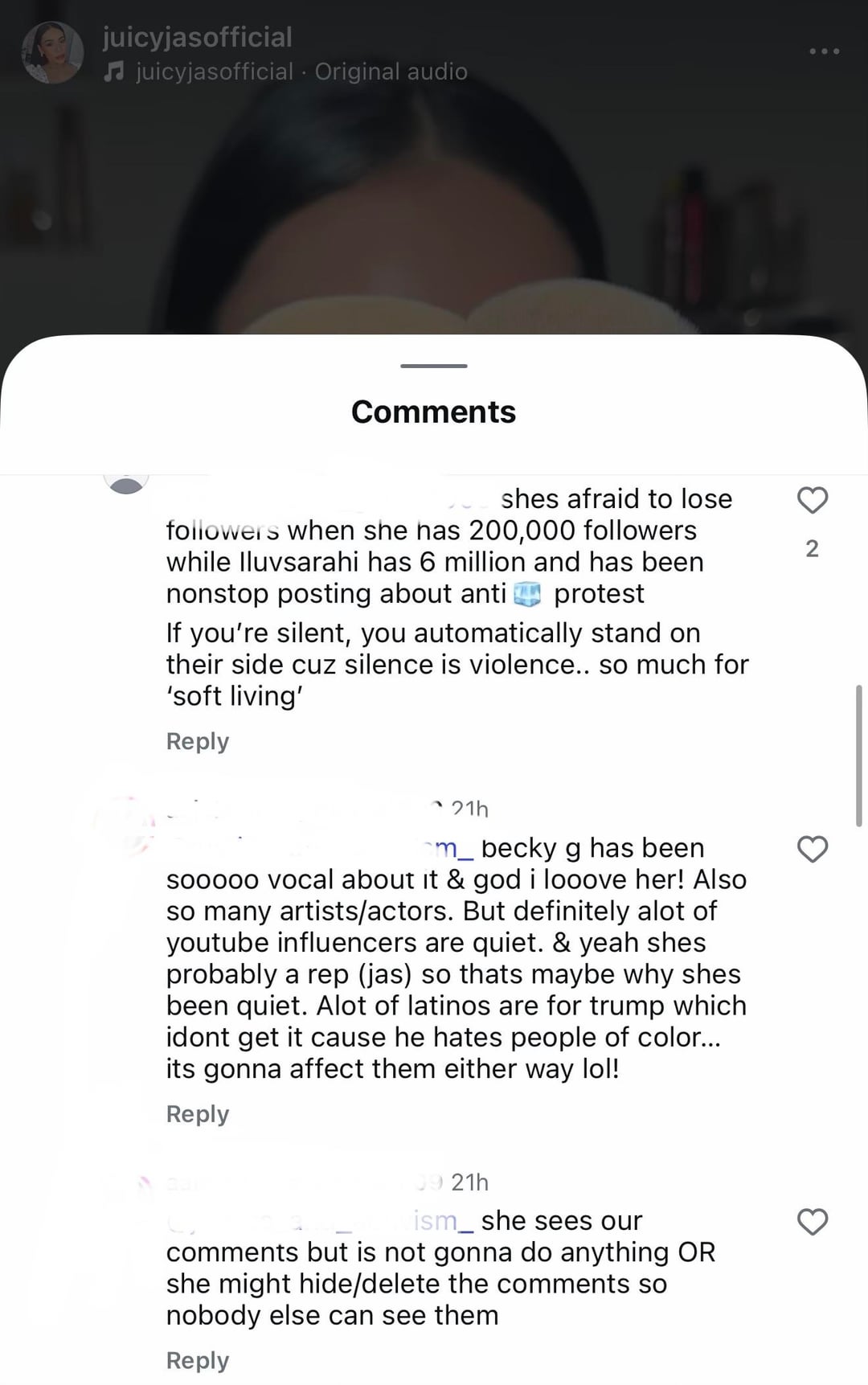 I’m glad people are noticing and leaving comments on her posts. She’s been silent for far too long and gets a free pass because she puts on a sweet girl act.