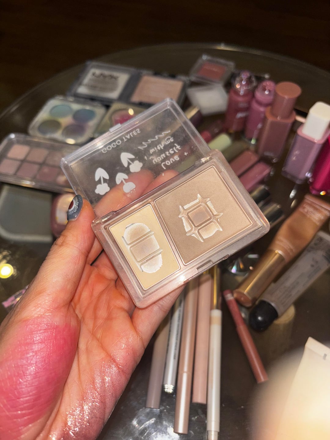 Nyx can't stop won't stop powder Gogo Tales highlight contour duo g06 Jill leen cheek cream blush 104 Gella highlighter d04 yes I'm very much into chinese beauty brands by Ill_Art_7151