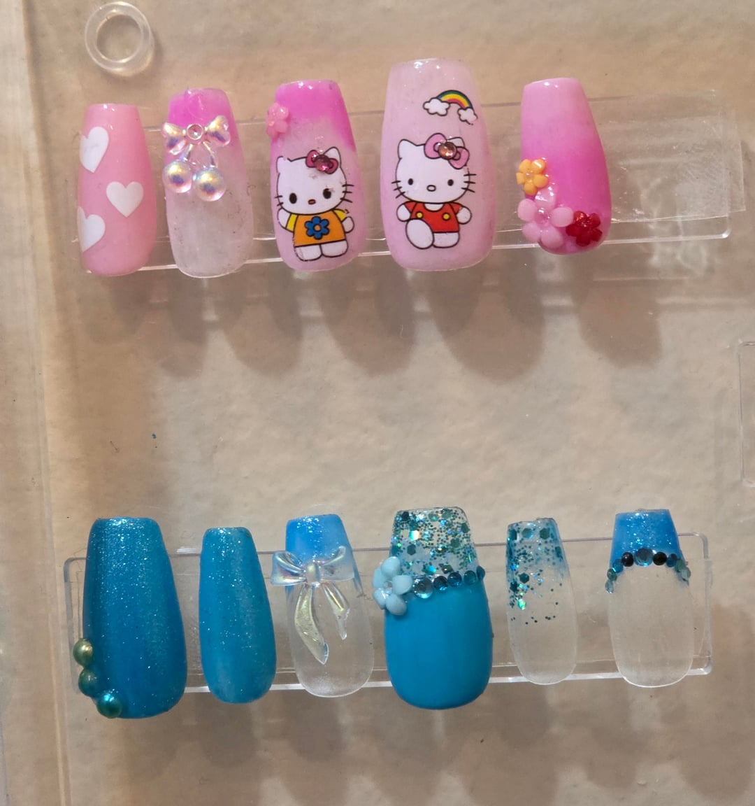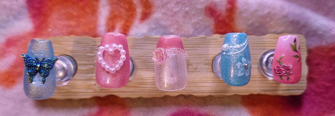 Please feel free to offer constructive criticism or feedback. I'm always trying to improve. I mostly use water decals, foil transfer stickers, gel polish, and charms/rhinestones. I do hand paint some things like small hearts or French tips but I'm not super artistically inclined so I'm trying to get better at hand painting things.