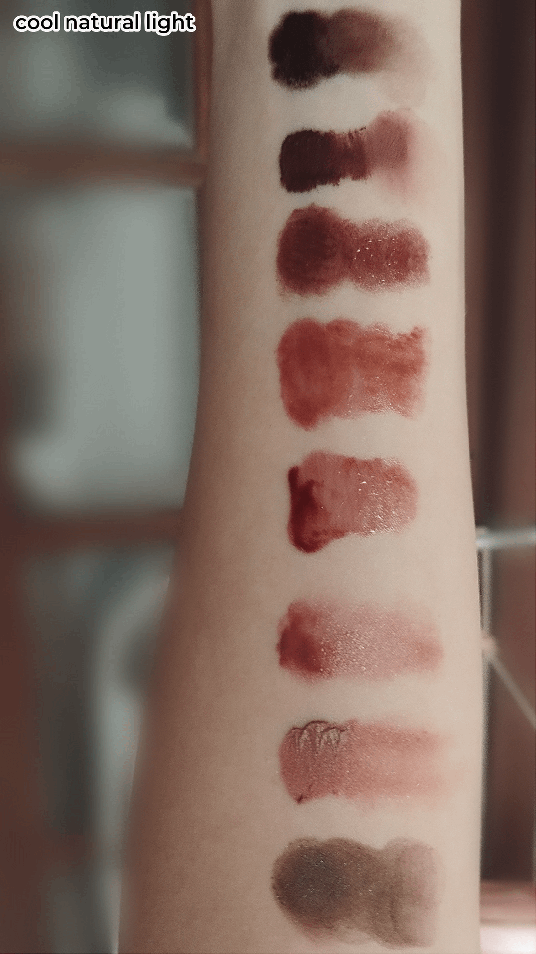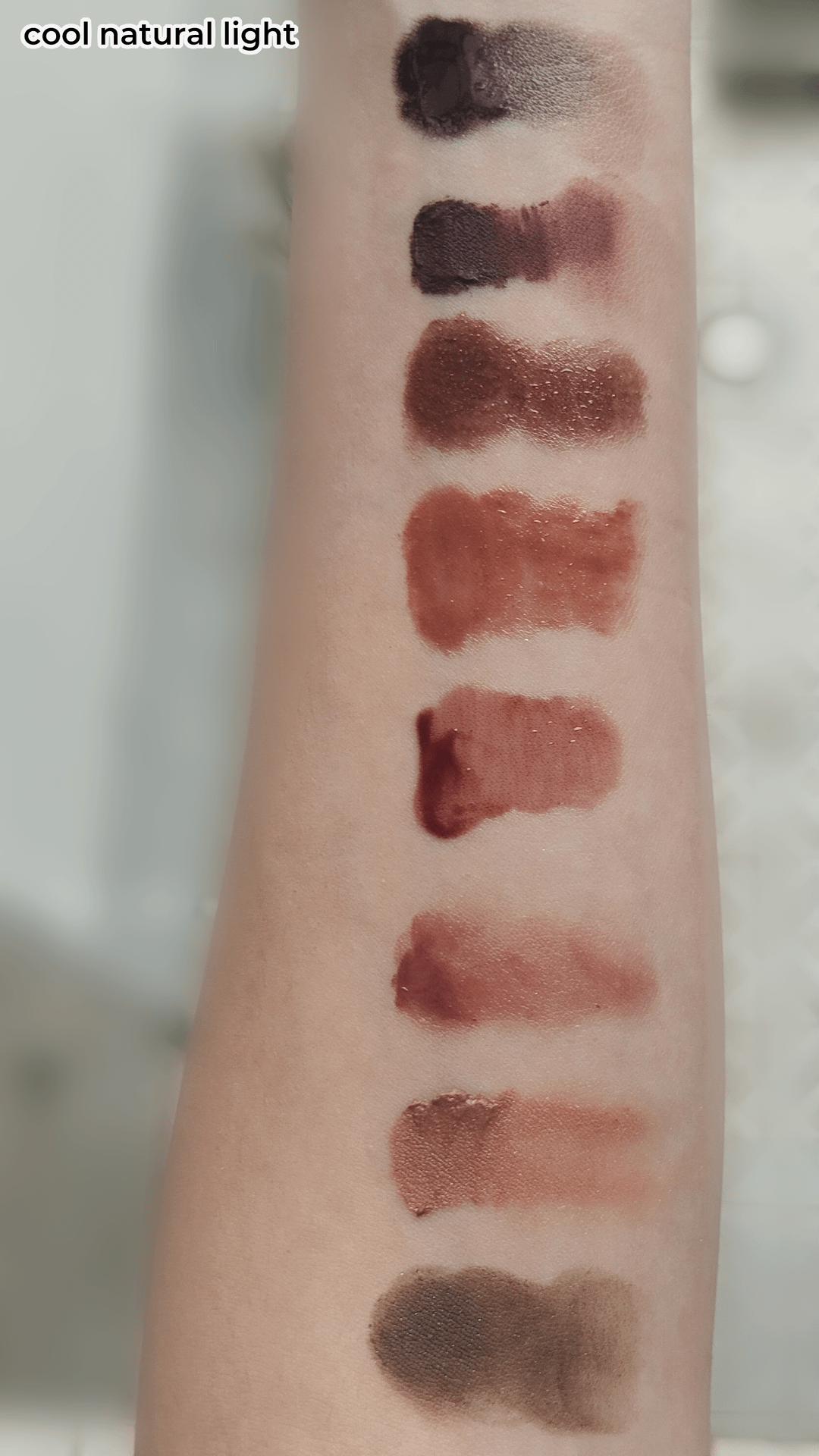 Another important disclaimer is that this is my phone's camera, so unfortunately it isn't very good haha. I included the shades that either I perceive as brown, or the brand described as brown! I also tried to build them up as much as I could for the lip swatches, but I do have a light hand, and I tend to blend them out.