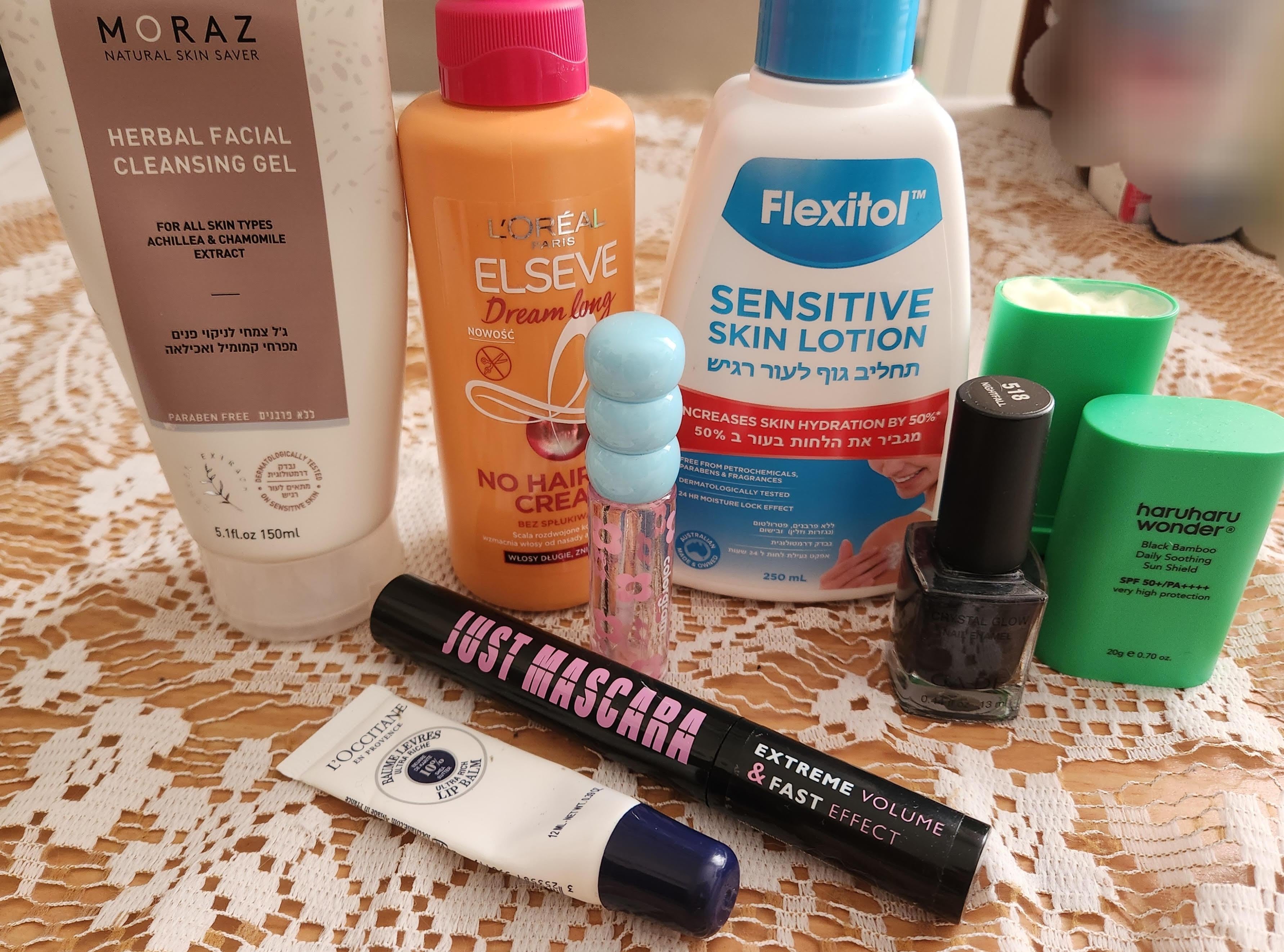 maybe_lucifer on February 3, 2026 12:43 pm Products: -Moraz herbal facial cleansing gel -Loreal no haircut cream -Flexitol skin lotion -Haruharu sun shield stick -Colorgram 00 pearl gloss -Ga-de nail polish 518 nightfall -Dermacol just mascara -L’occitane ultra rich lip balm
