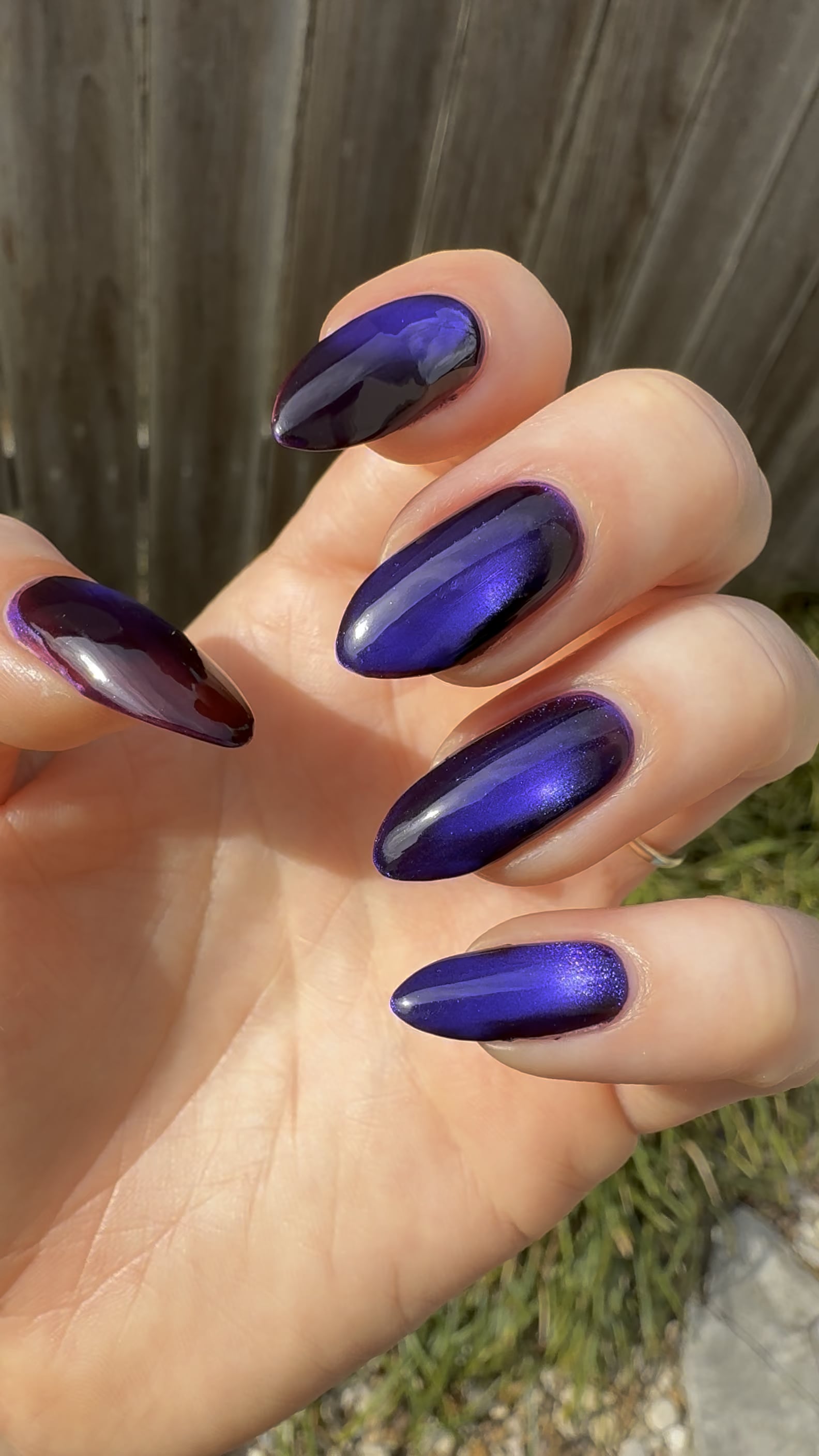 everything about this is so stunning – the polish, the nail shape, the ring, the sunlight!!!